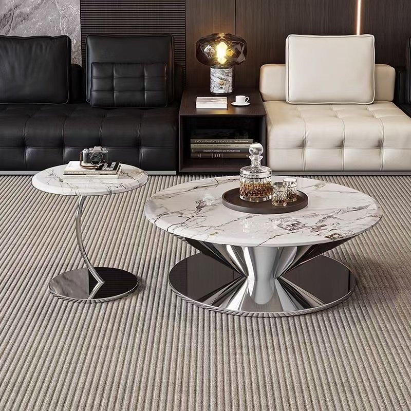 天然微晶奢石大理石茶几轻奢现代客厅极简边几组合茶几套装