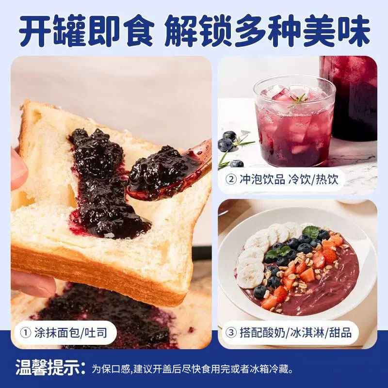 纯熬蓝莓酱大颗粒果肉0脂肪无糖涂抹夹面包烘焙奶茶调味蓝莓果酱