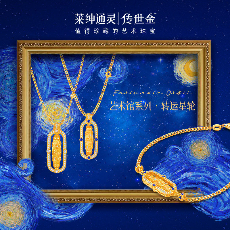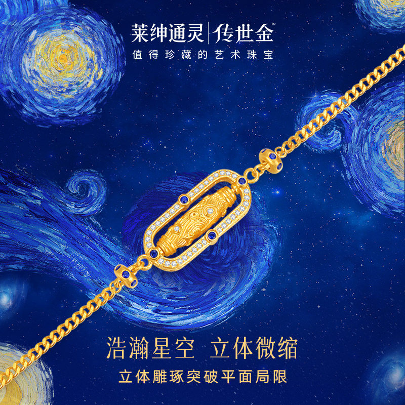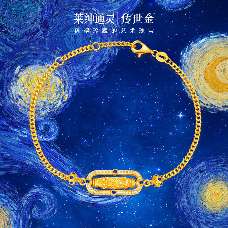 【商场同款】莱绅通灵传世金 转运星轮 足金黄金钻石蓝宝石手链