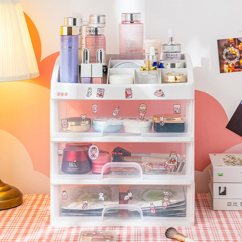 桌面整理盒抽屉式收纳盒梳妆台置物架化妆品整理收纳架抽拉大容量