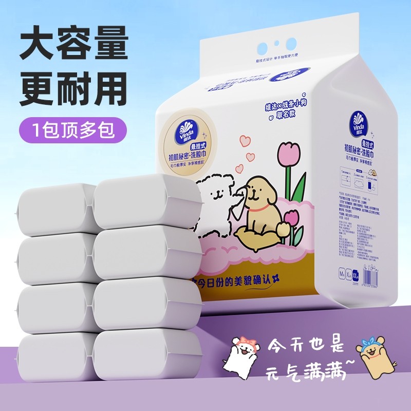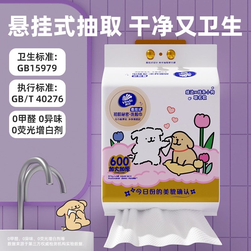 Vinda/维达线条洗脸巾小狗款悬挂式一次性抽取式壁挂式加大棉柔巾