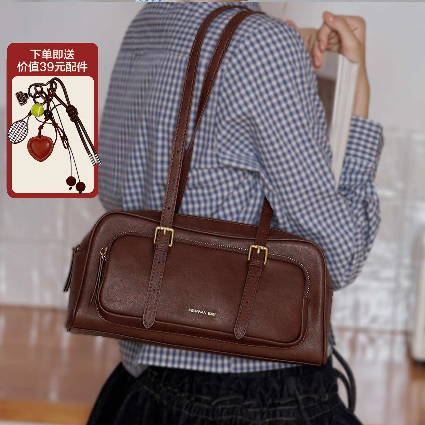 真皮波士顿包牛皮法棍包女高级复古通勤单肩手提腋下包老钱风包包