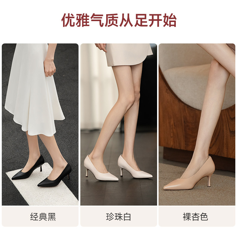 【明星同款|静音系列】千百度练习曲裸色高跟鞋真皮通勤法式单鞋