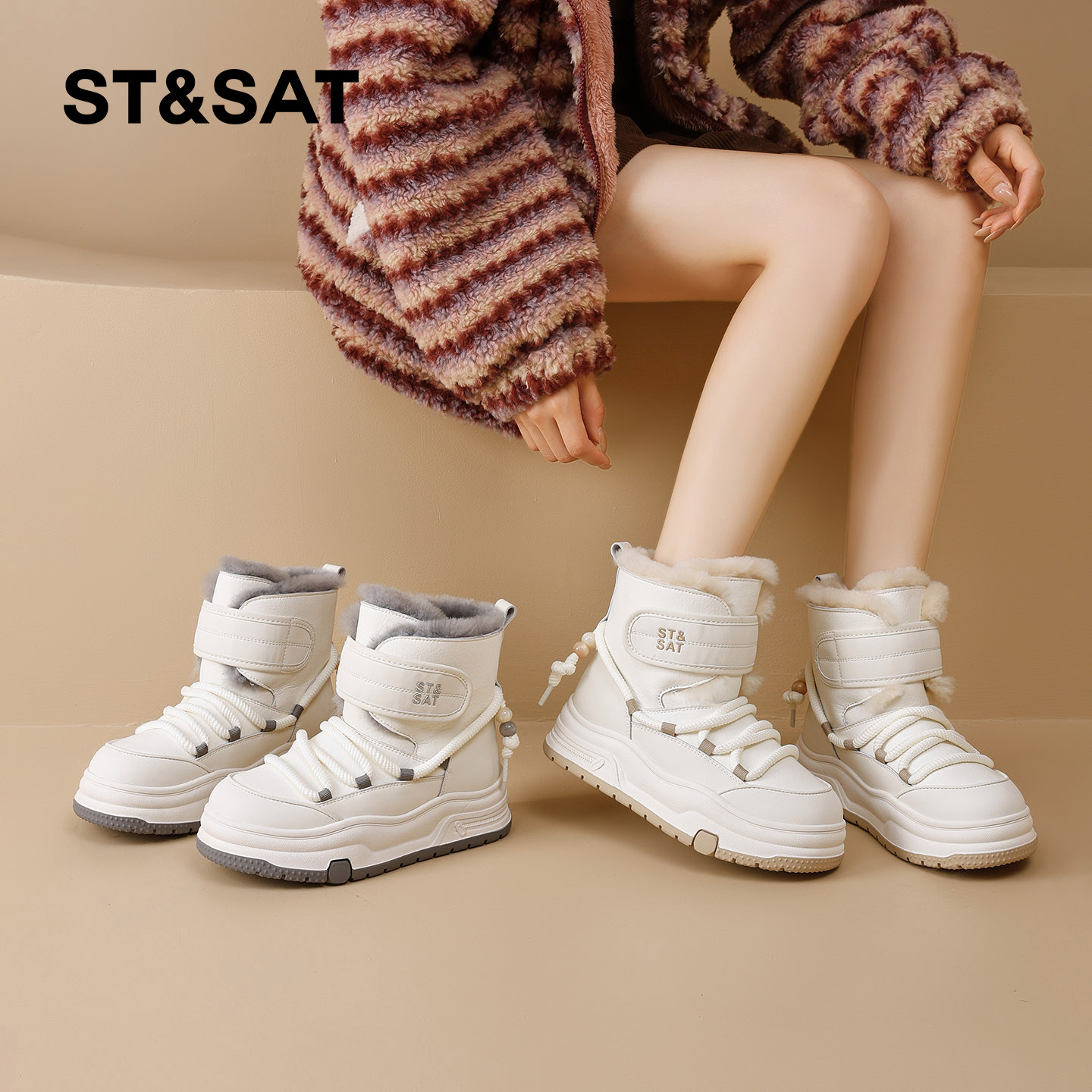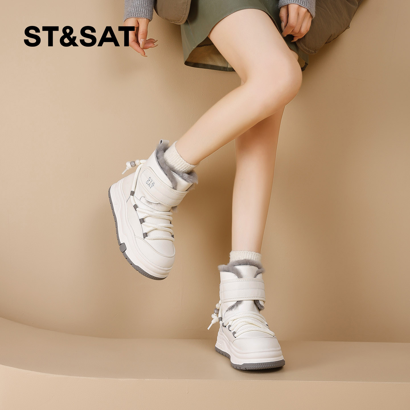 星期六厚底雪地靴女防滑2025冬季加绒魔术贴圆头保暖东北大棉靴子