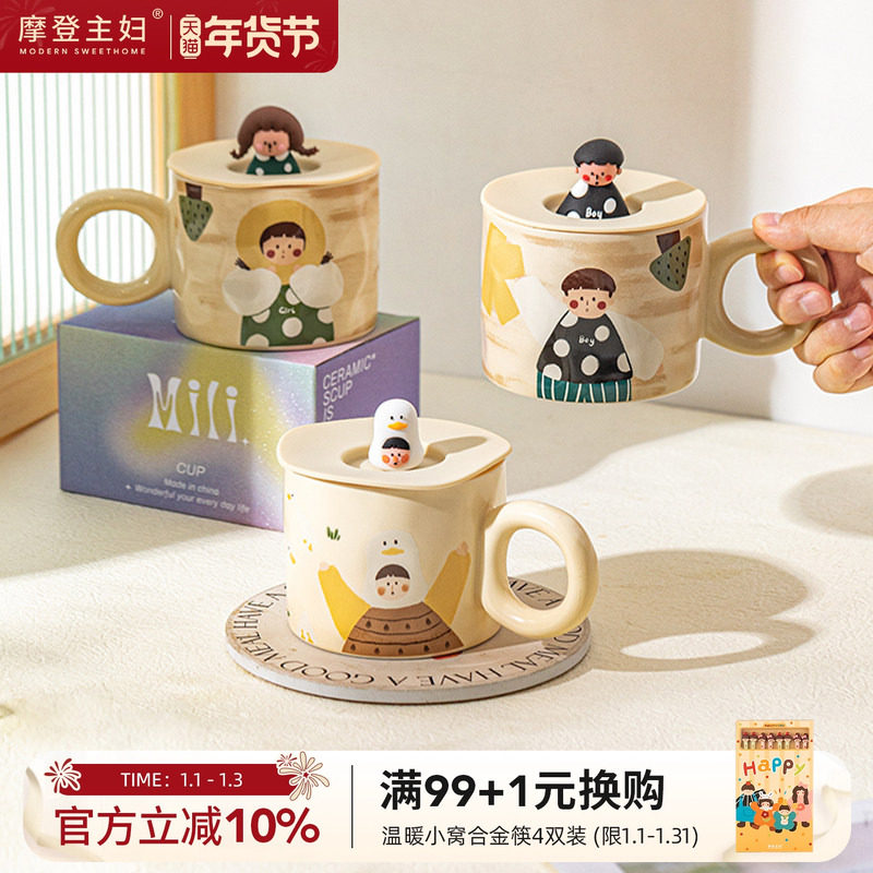 摩登主妇陶瓷马克杯带盖杯子伴手礼办公室情侣水杯女高颜值咖啡杯
