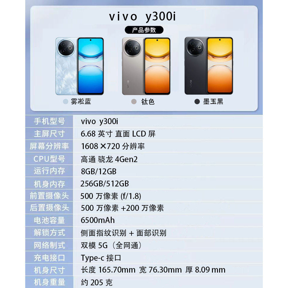vivo Y300i 5G全网通6500大电池长续航NFC 红外遥控 新款智能手机