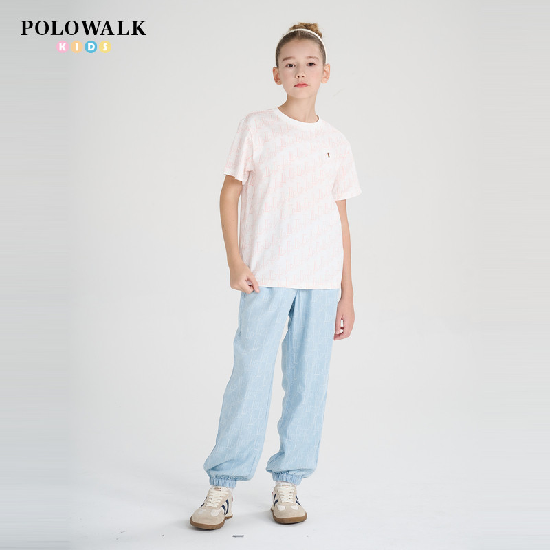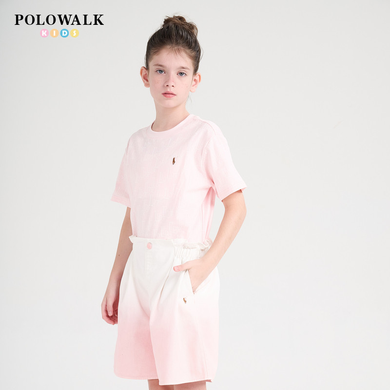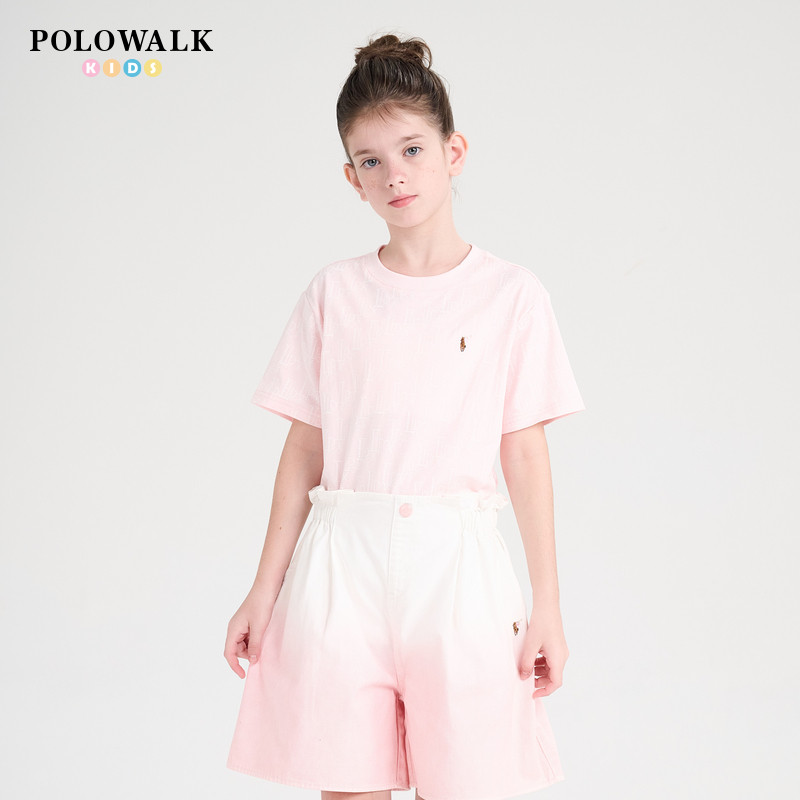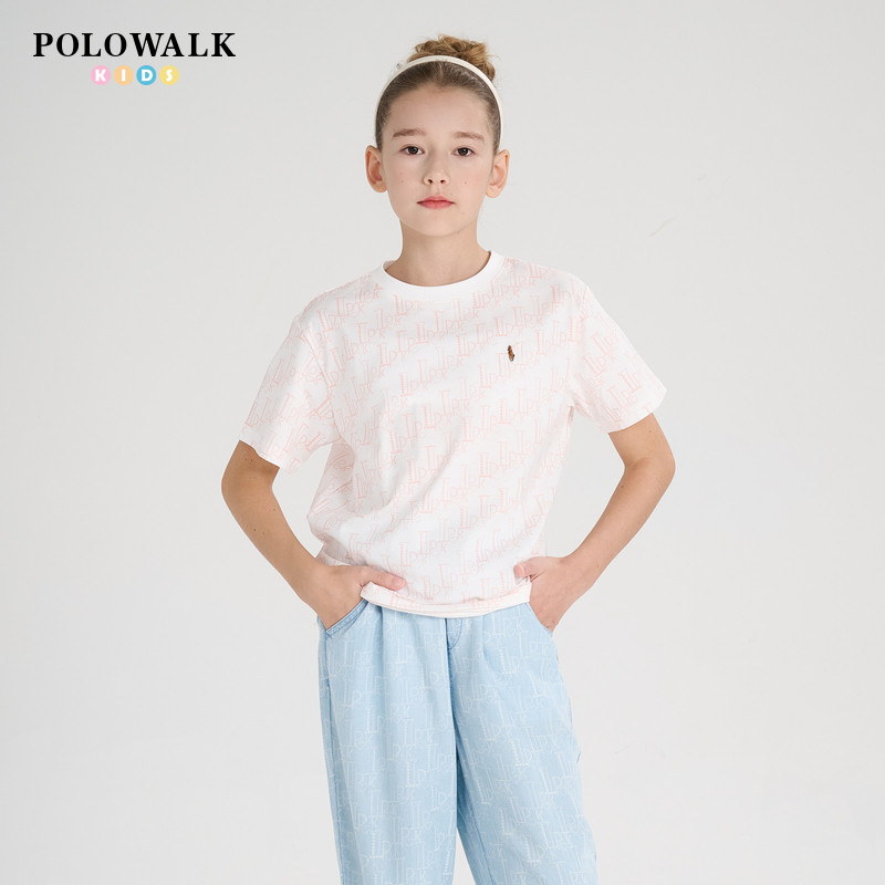 POLOWALK童装2025新品夏季短袖圆领T恤女童上衣舒适休闲亲肤透气