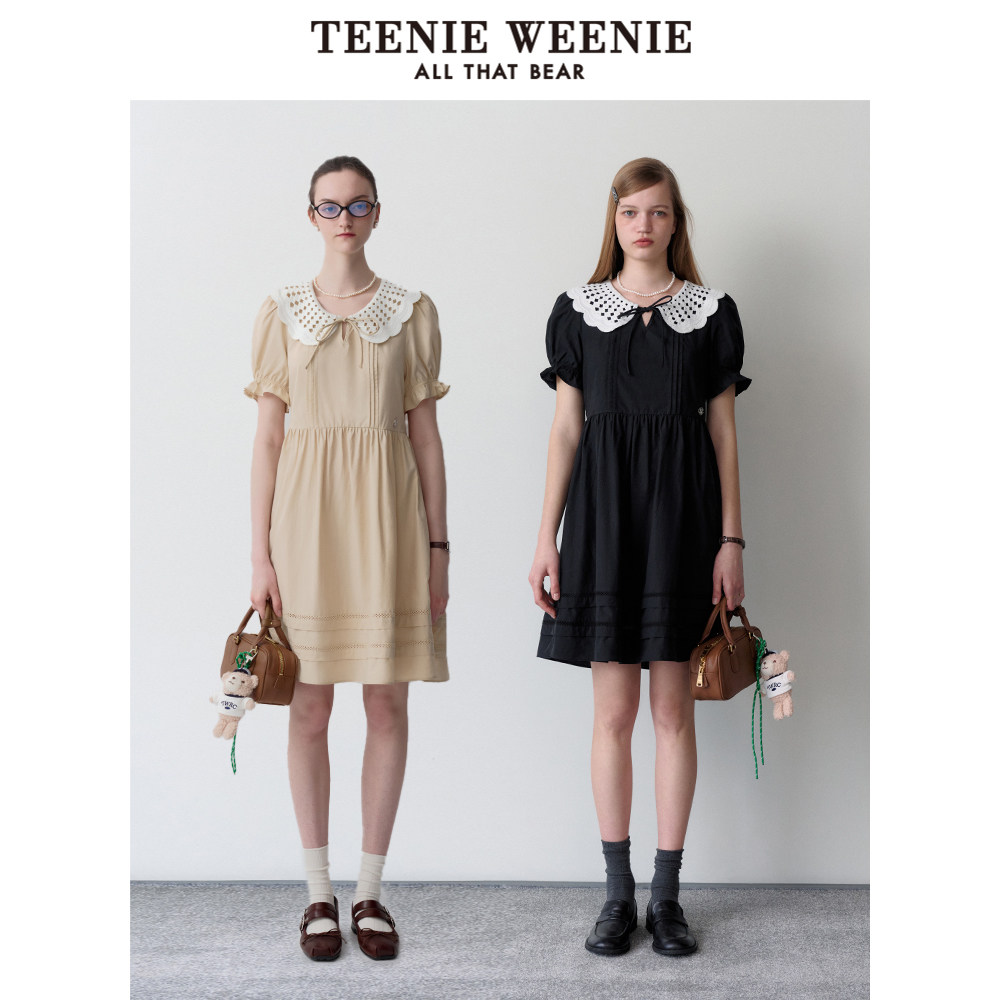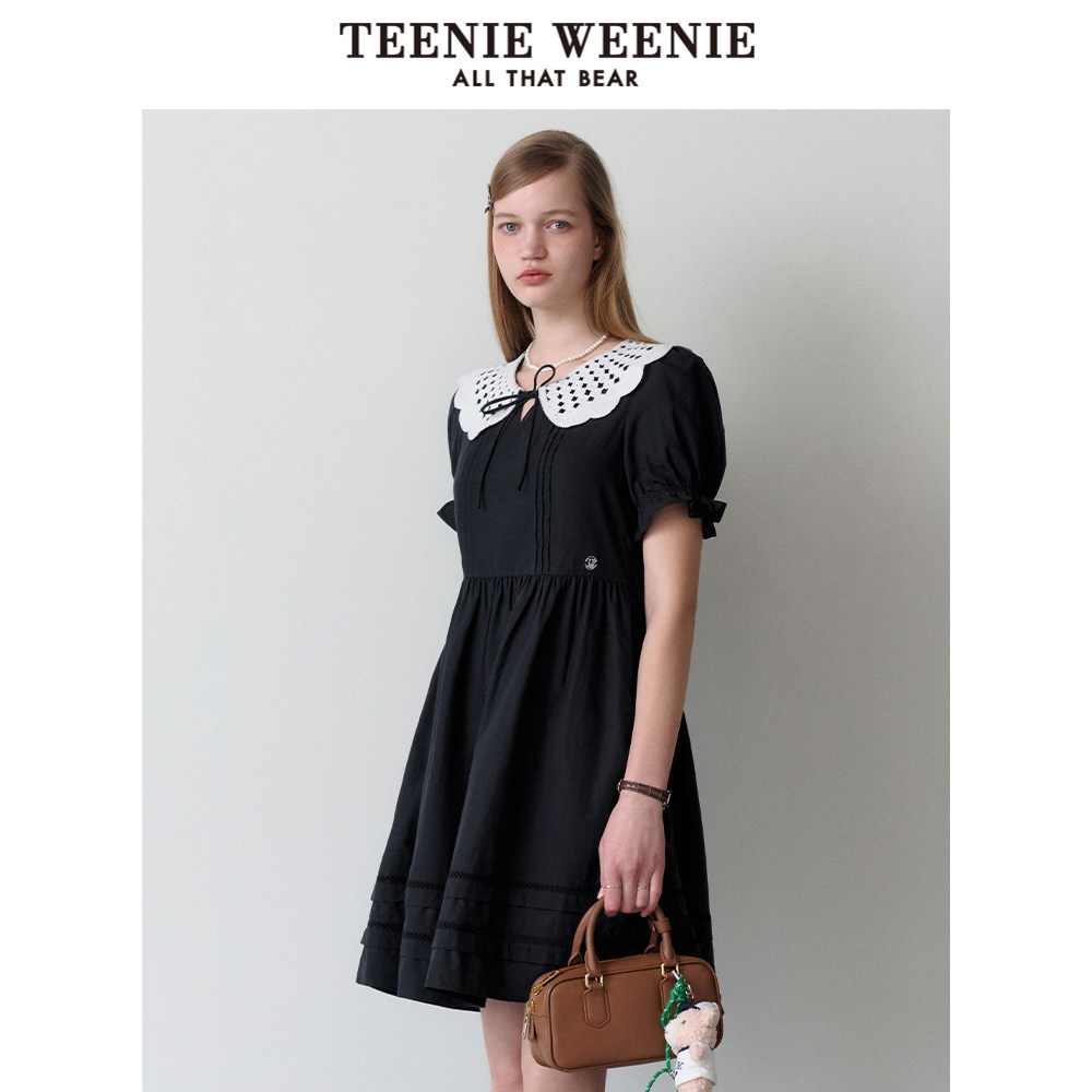 【天丝+棉】TeenieWeenie小熊奥莱法式学院公主裙黑色大摆连衣裙