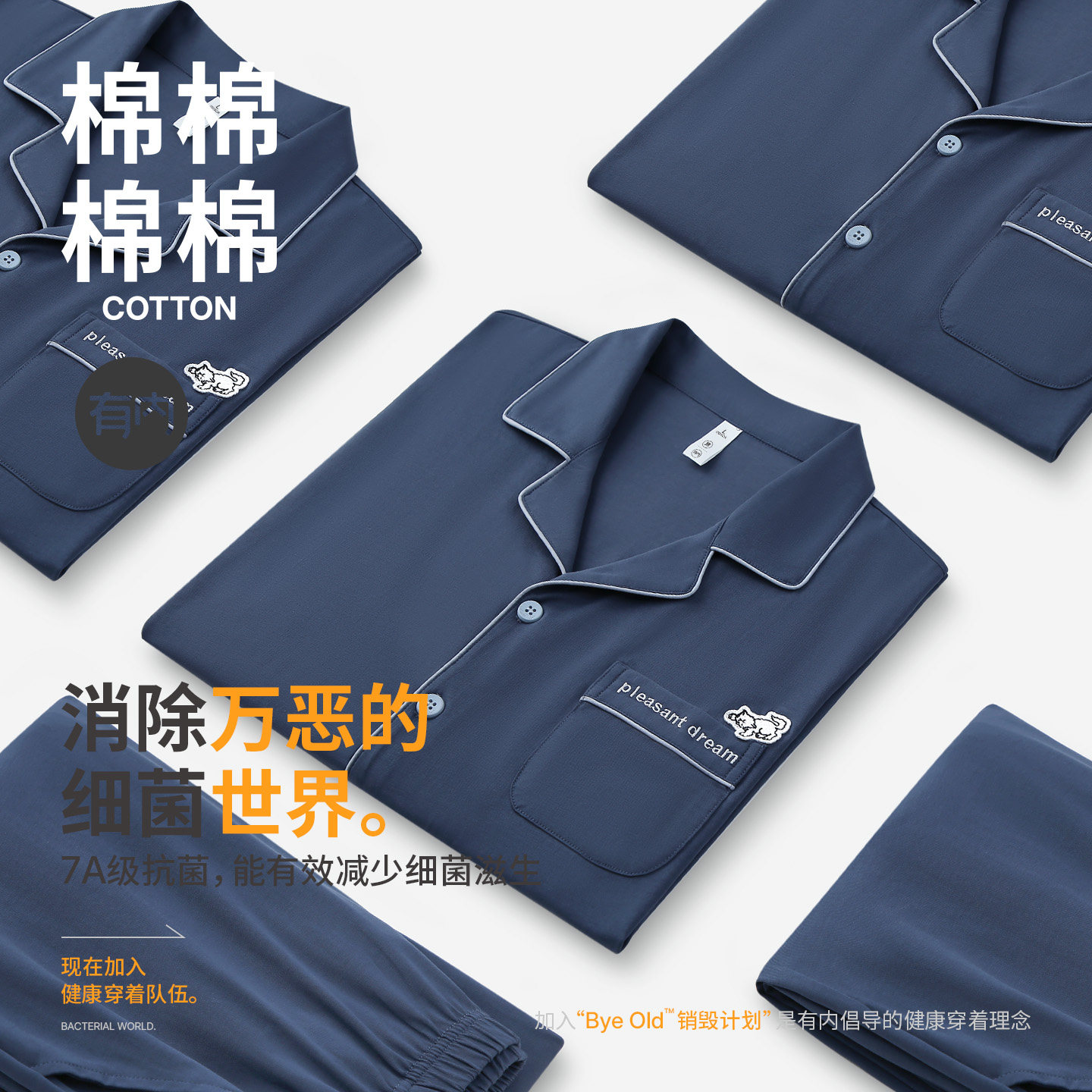 有内睡衣男款2026新款纯棉春夏7A抗菌防螨长袖长裤男生家居服套装