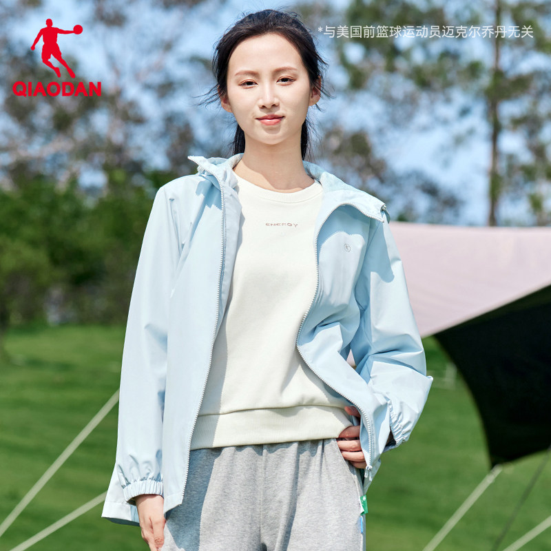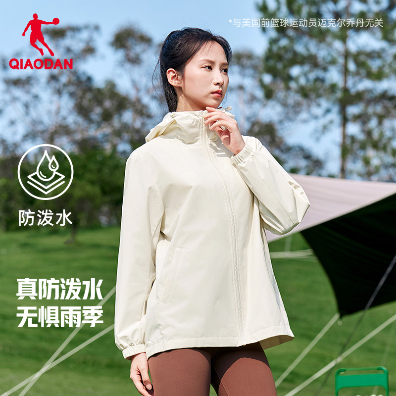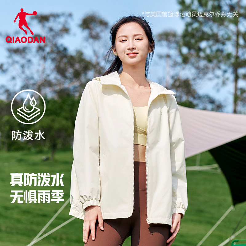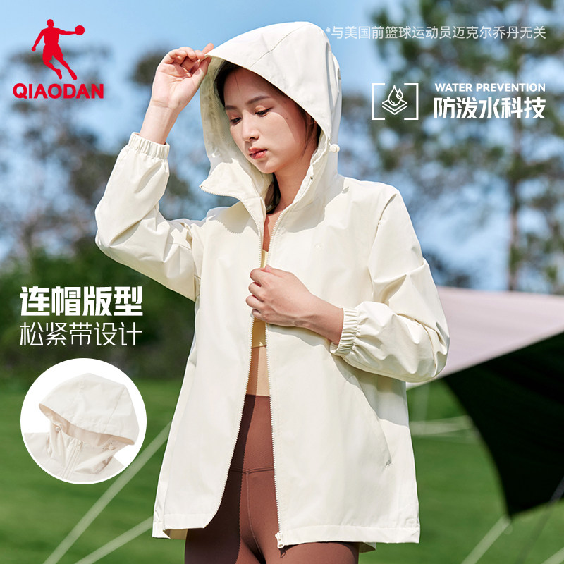 乔丹连帽梭织风衣女生2025冬季新款单层防风休闲运动户外登山外套