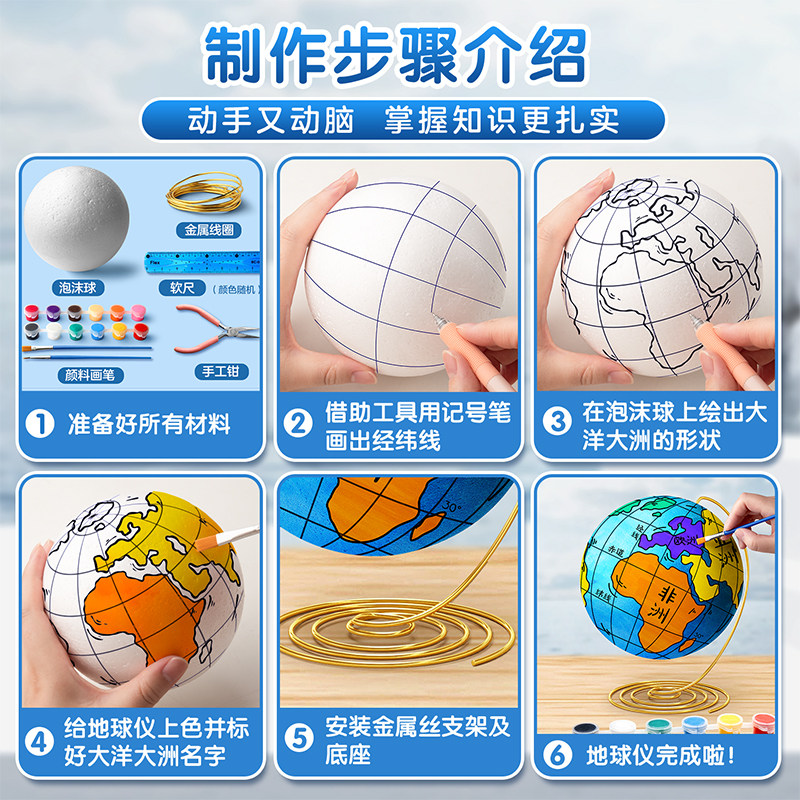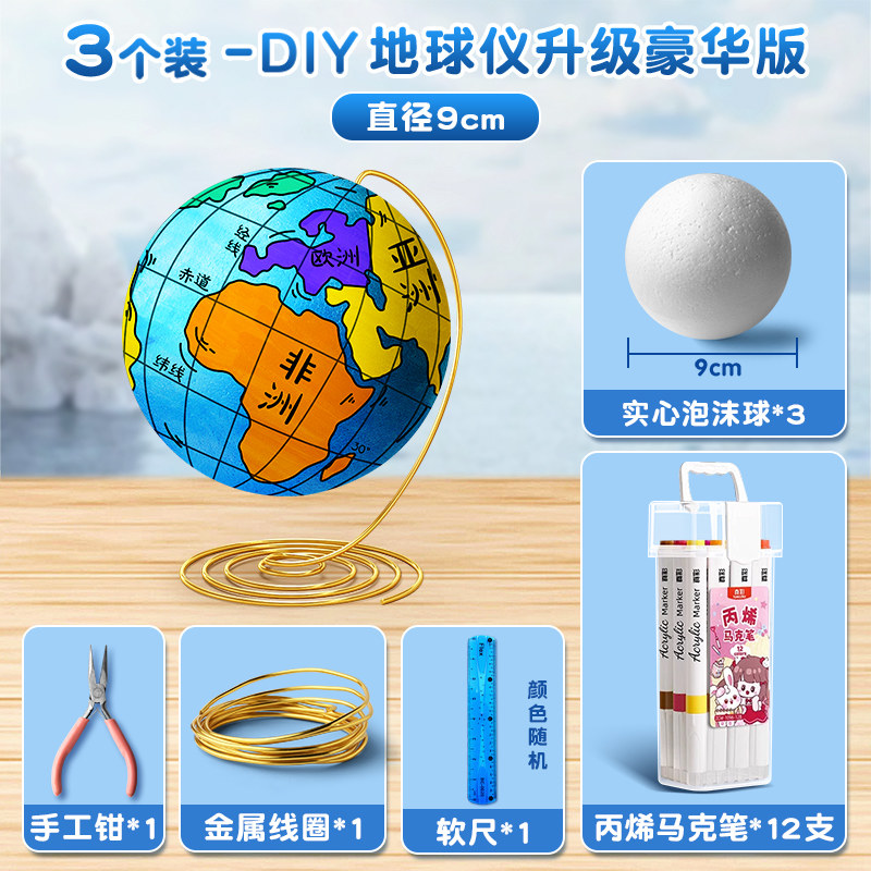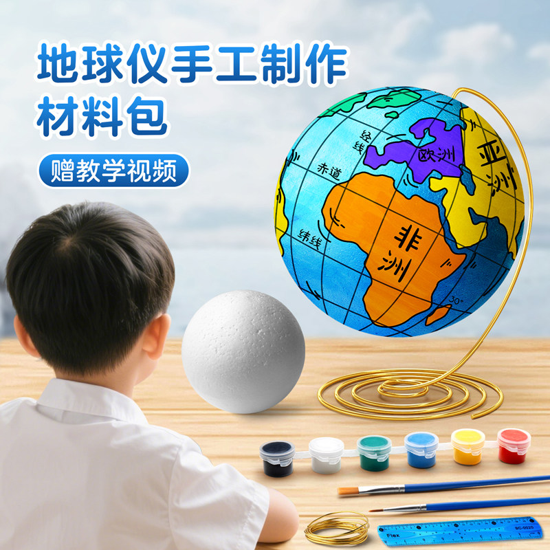 diy地球仪手工制作材料包初中生专用学生15/20cm小号套装泡沫球自制空白圆球模型地理手绘简易小学半成品初一