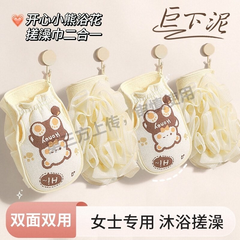 沐浴球搓澡巾二合一2025热卖女士专用搓泥灰神器双面洗澡手套家用