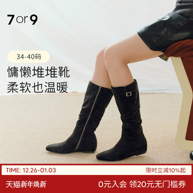 7or9长靴子女秋冬新款内增高弹力堆堆中筒靴不过膝瘦瘦靴炭焙乌龙