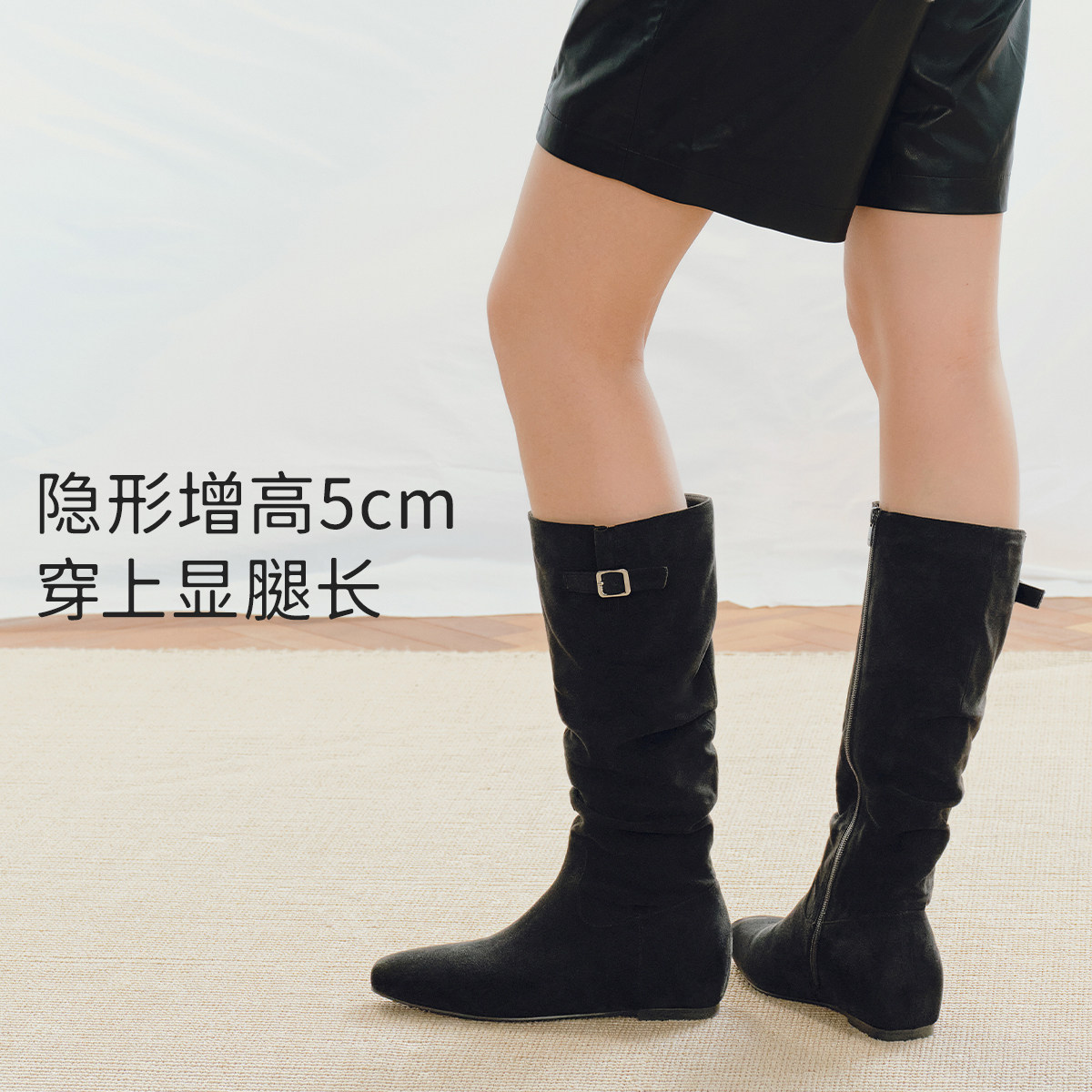 六点大叔小个子内增高两穿高筒靴长筒靴女厚底过膝显瘦绒面长靴子