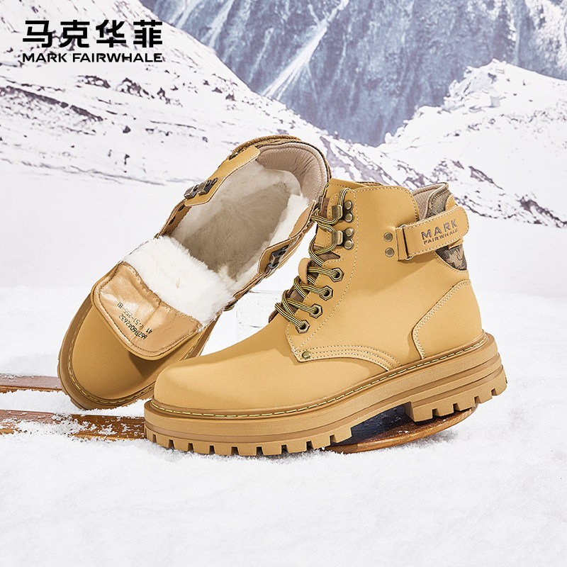 马克华菲马丁靴男款冬季加厚棉鞋男户外大黄靴工装靴子男士雪地靴