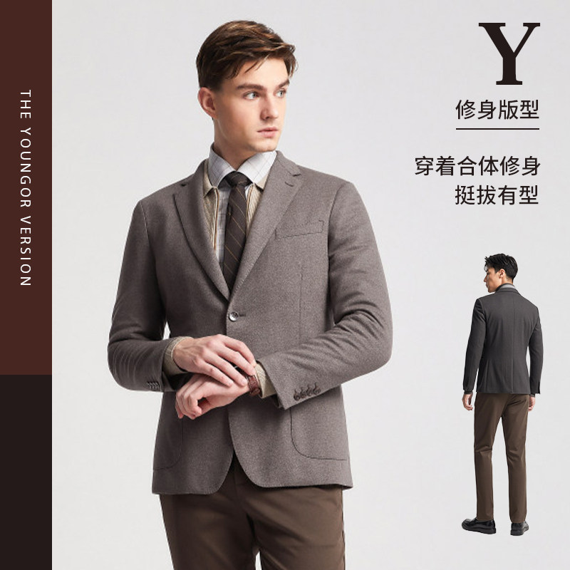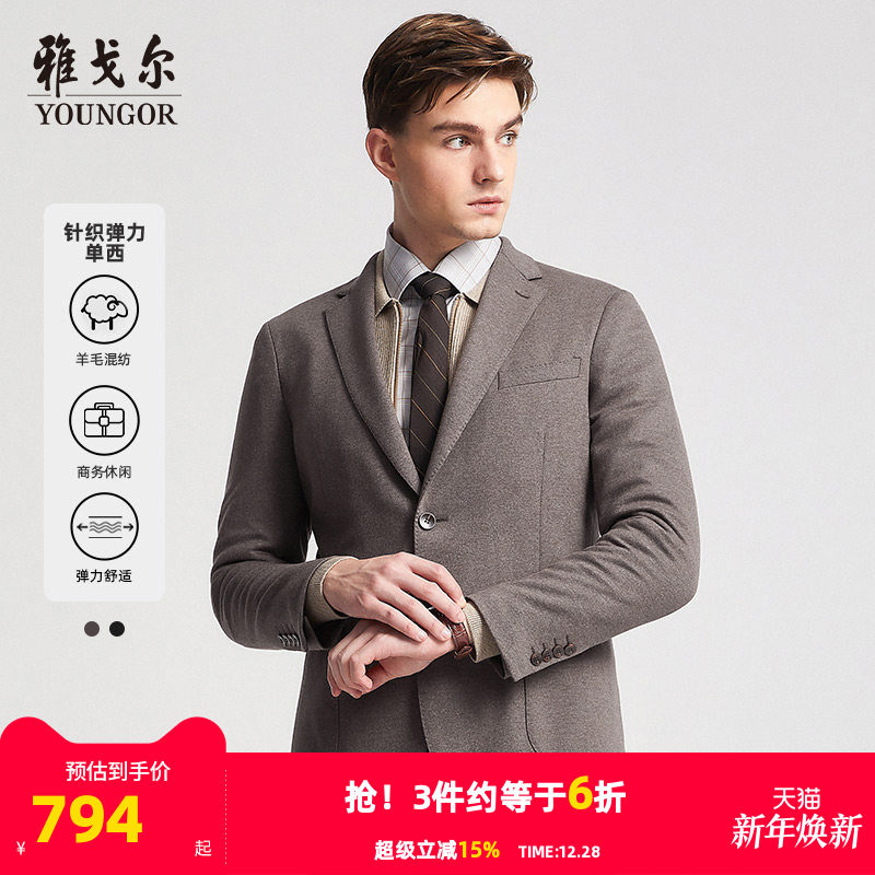 雅戈尔男士西服秋季新款官方商务休闲羊毛弹力西装外套男4881