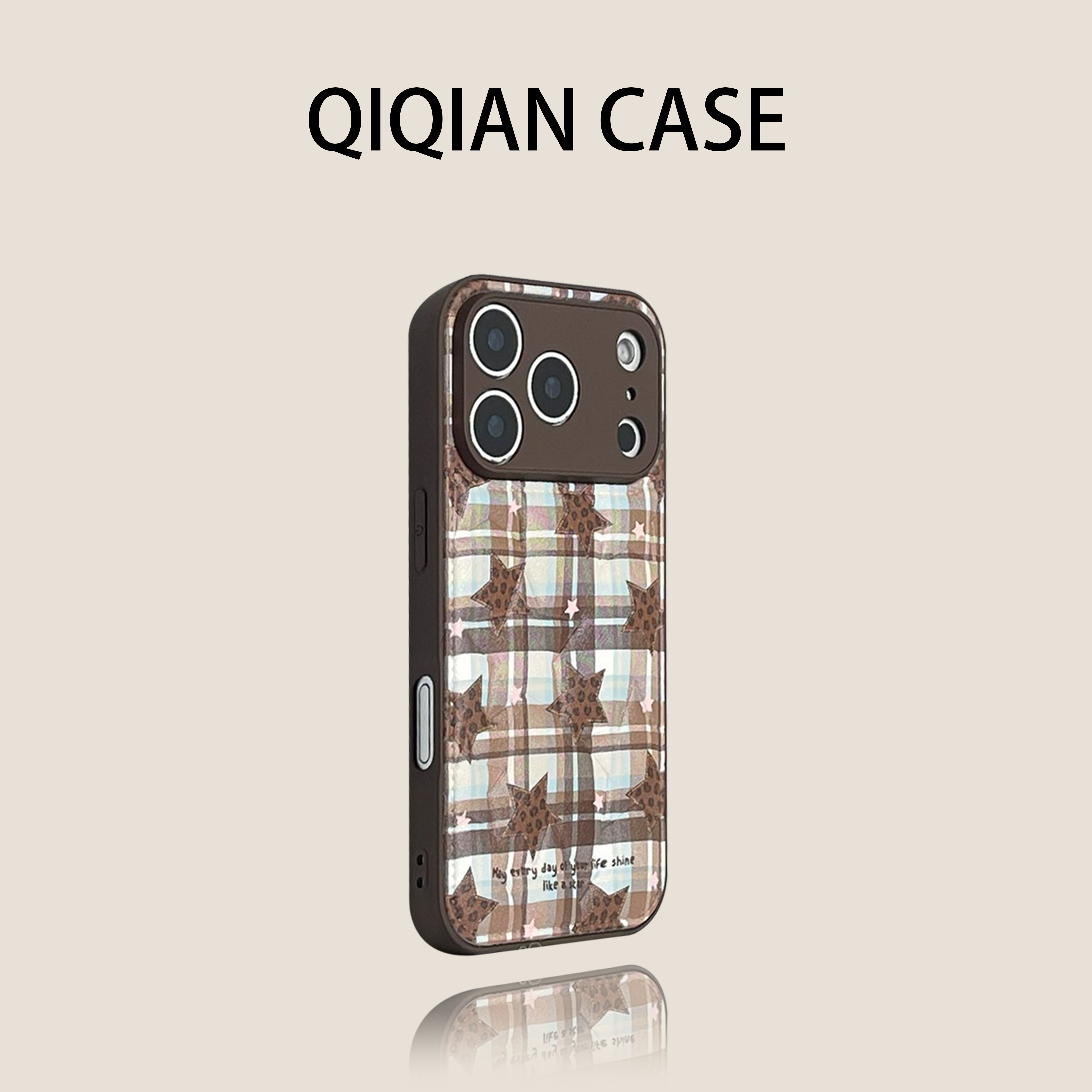 启乾 趣味星星皮质鼓包格子豹纹五角星iPhone17/16手机壳适用苹果15/14promax皮质硬壳13小众高级感潮流时髦