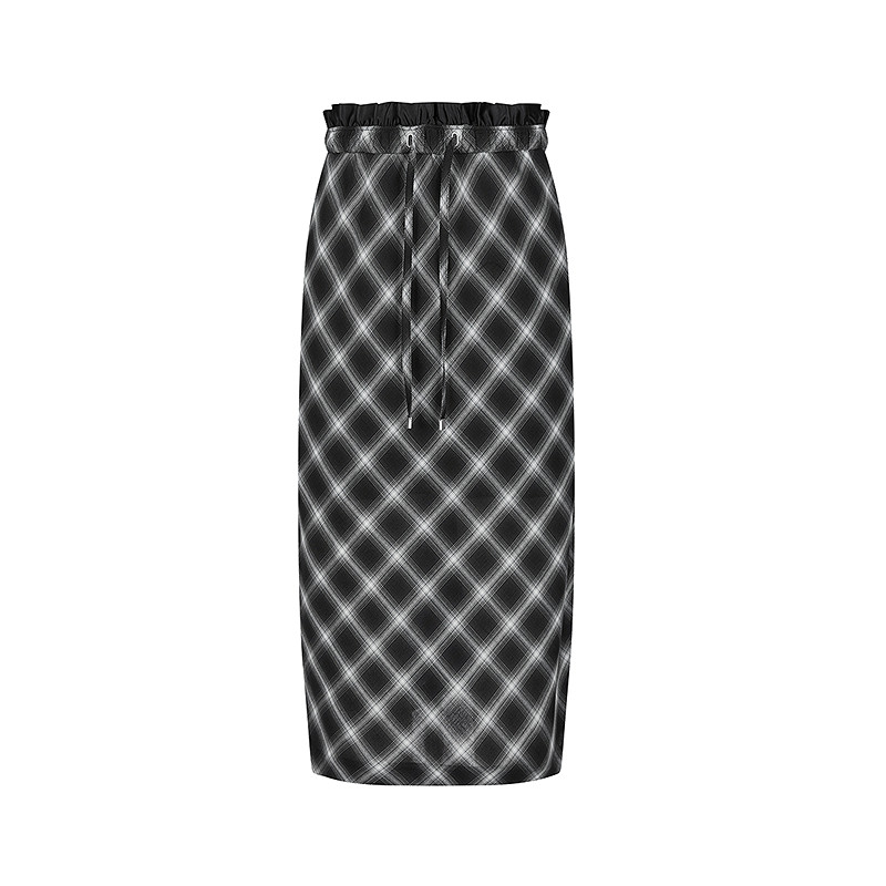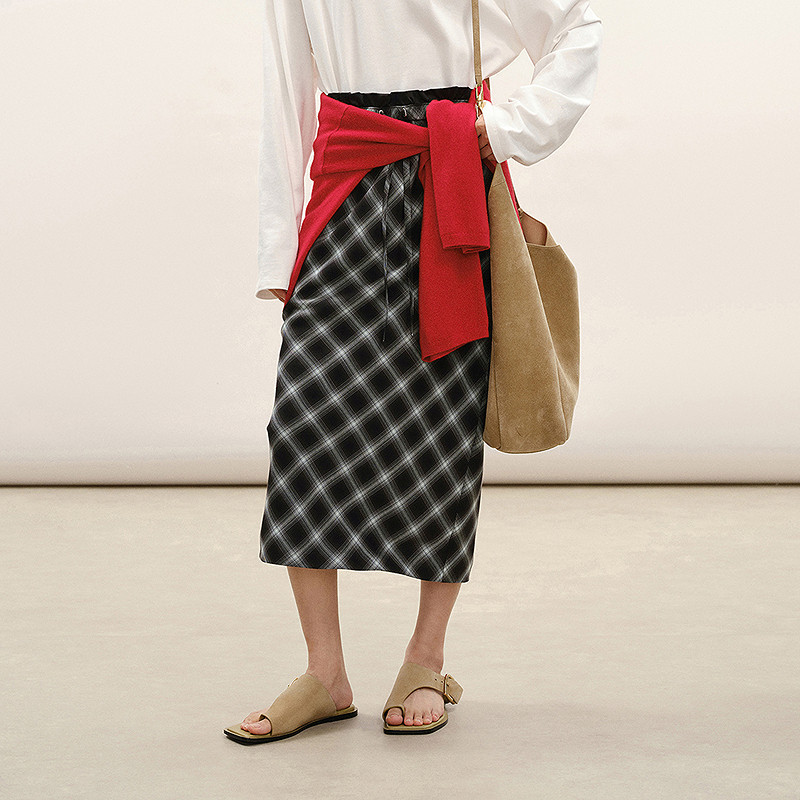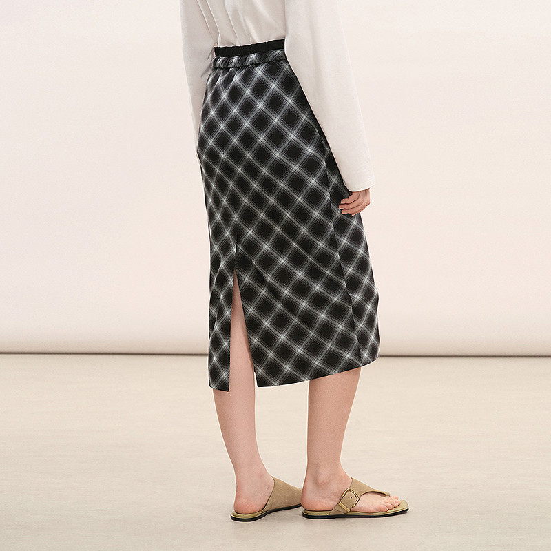 【商场同款】LESS2026春新款艺术格纹开叉直筒半身裙2Q1D15730