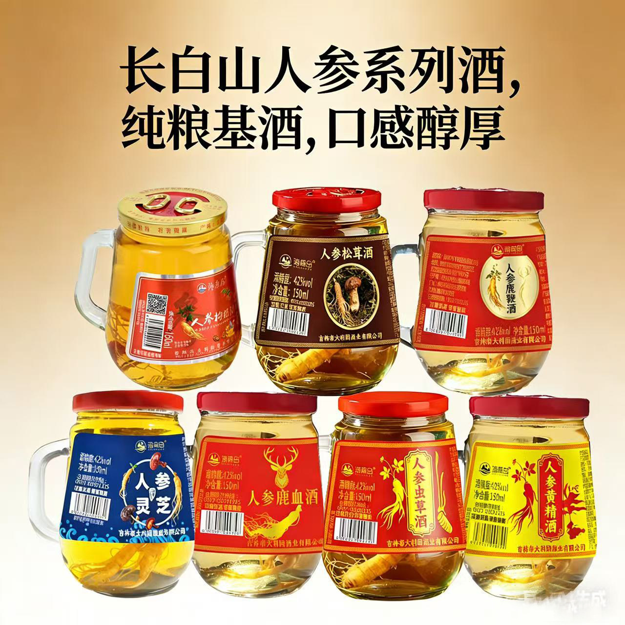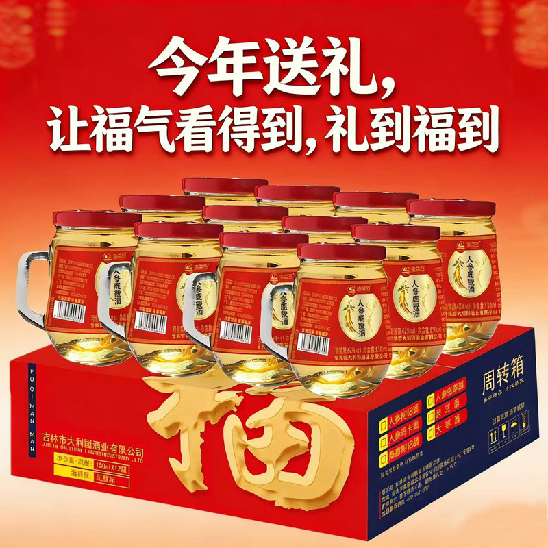 人参鹿鞭酒150mlX12杯枸杞酒42度52度东北吉林长白山滋补养生酒