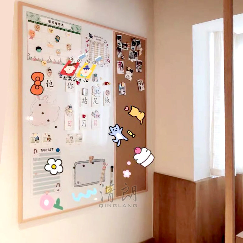 清朗白板软木组合留言板计划板珐琅板挂墙磁吸功能板照片墙儿童家用黑板墙挂式办公家用装饰图钉板尺寸定制