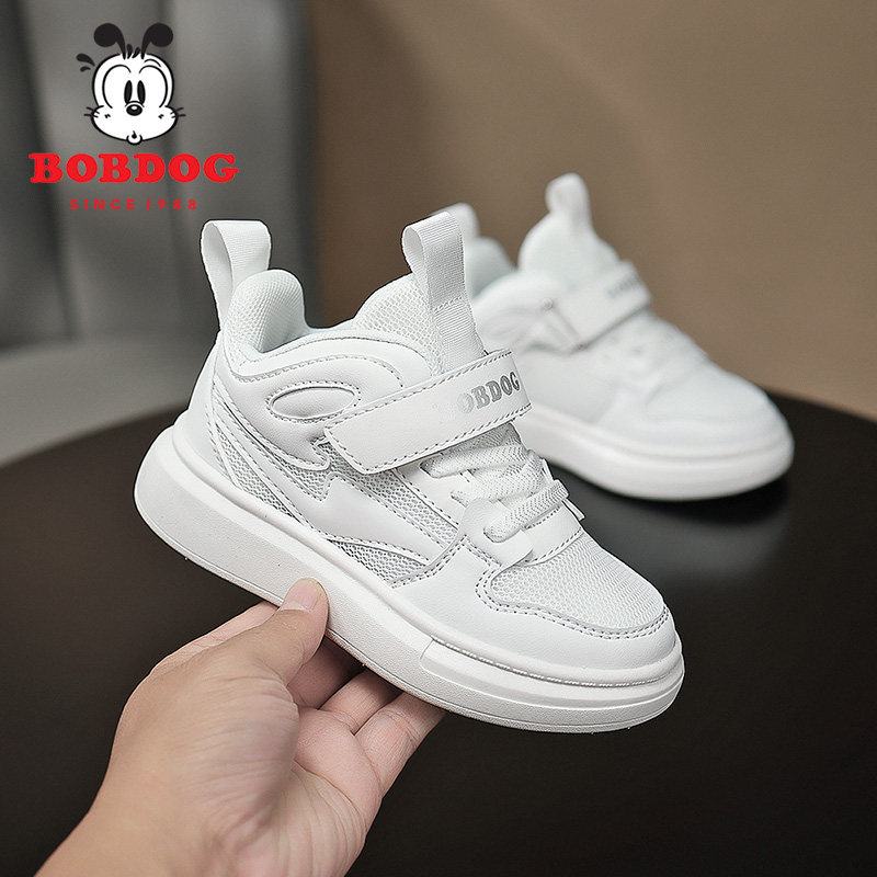 巴布豆男童小白鞋网面休闲板鞋2025春秋新款透气白色女童运动鞋子
