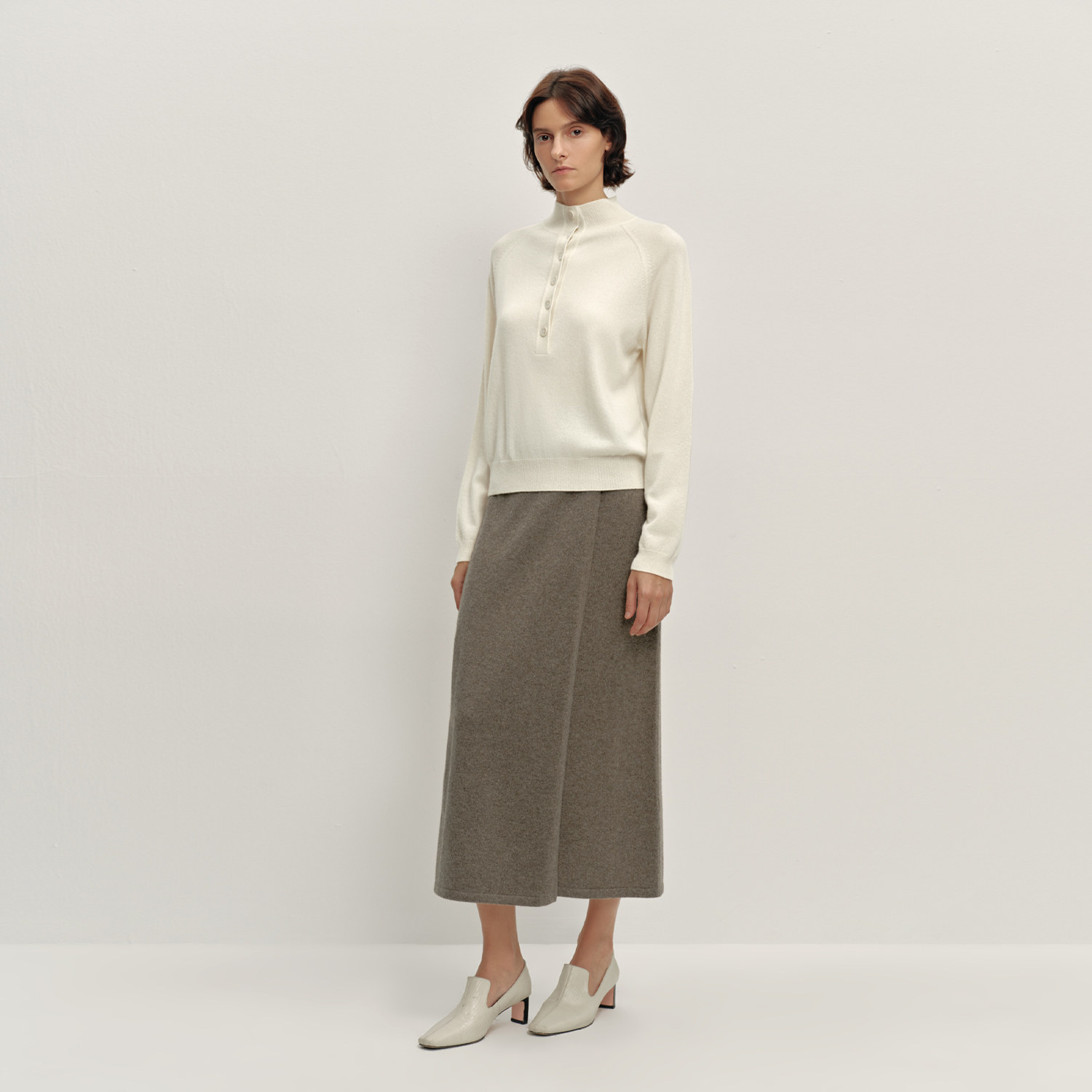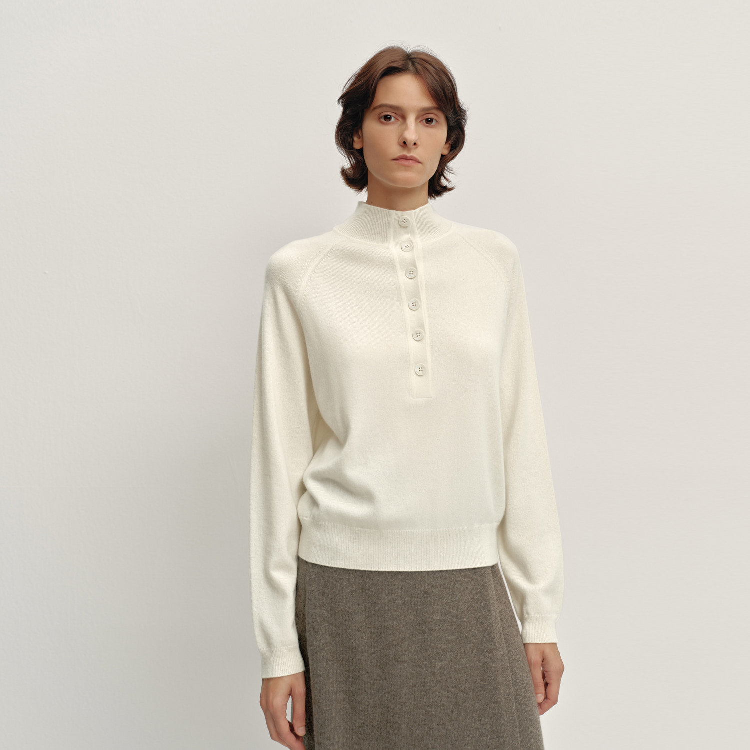 OVV2025秋冬新款女装简约舒适半开襟休闲蓬松长袖羊绒衫
