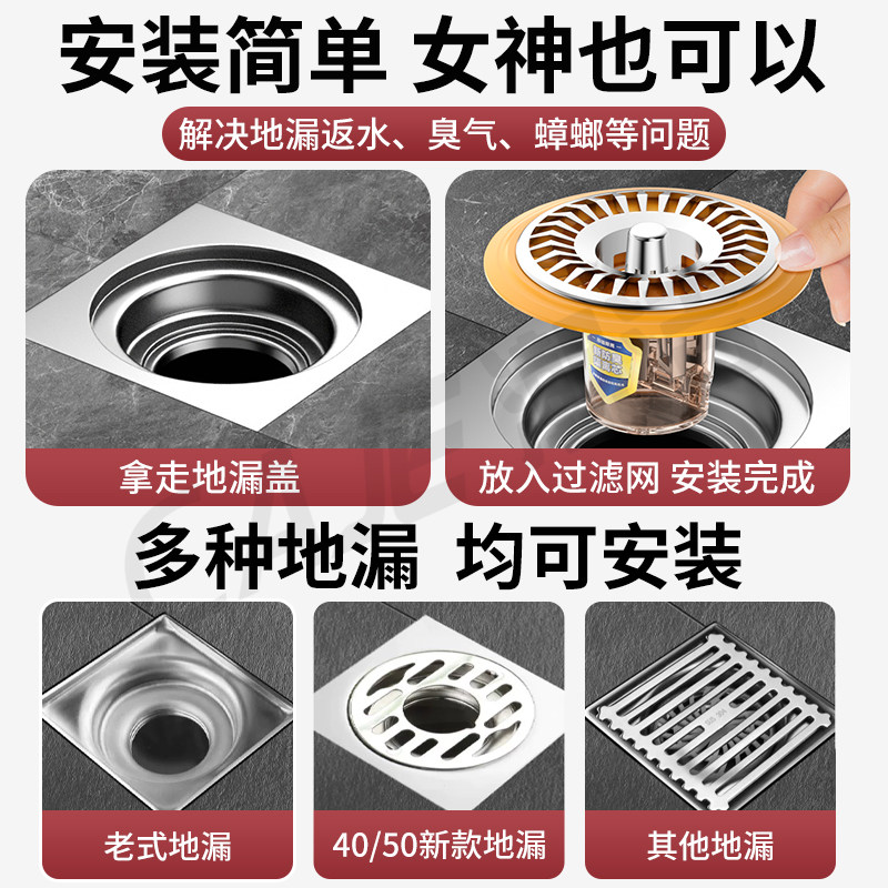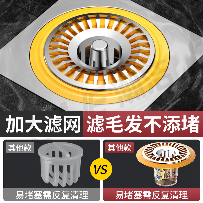 不锈钢地漏过滤网方形厕所地漏毛发过滤网防堵塞头发卫生间地漏盖