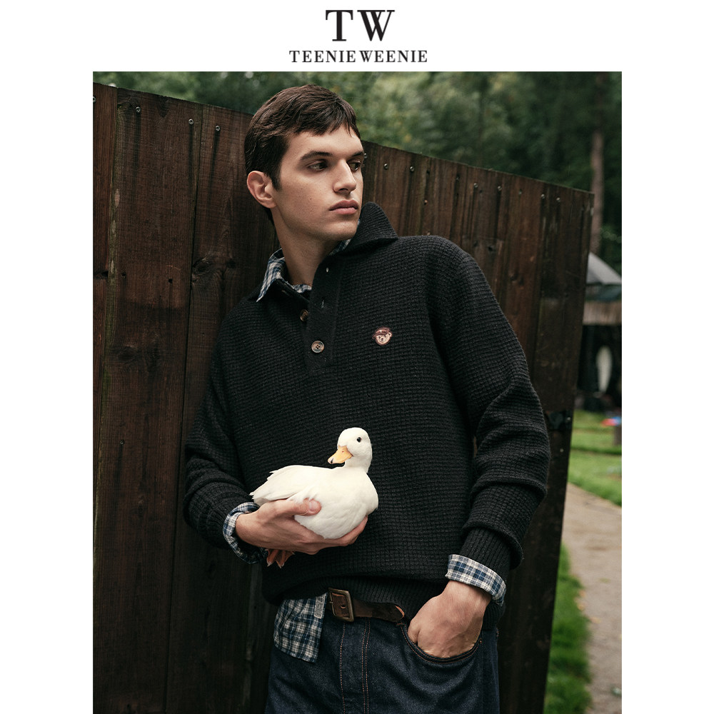 Teenie Weenie小熊男装熊头刺绣日式复古休闲落肩通勤毛衣