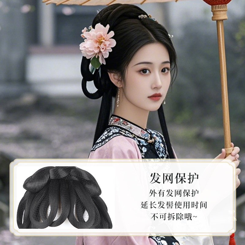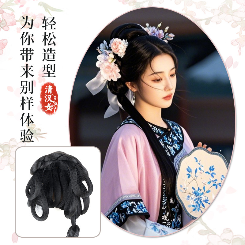 清汉女发髻汉服假发一体式侧盘发造型古装格格垫发包发型气质发丝