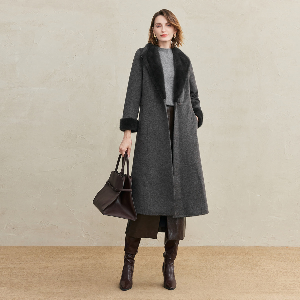【水貂毛】FINITY菲妮迪毛呢外套2025年冬季新款双面呢长款大衣女