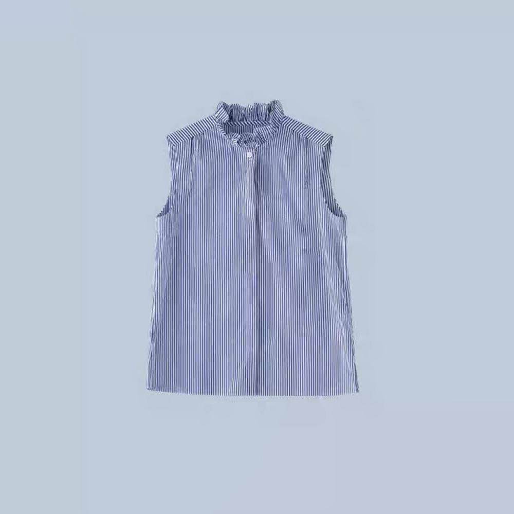 大洪官方严选店叠穿神器荷叶领内搭无袖条纹衬衫百搭背心打底衫女