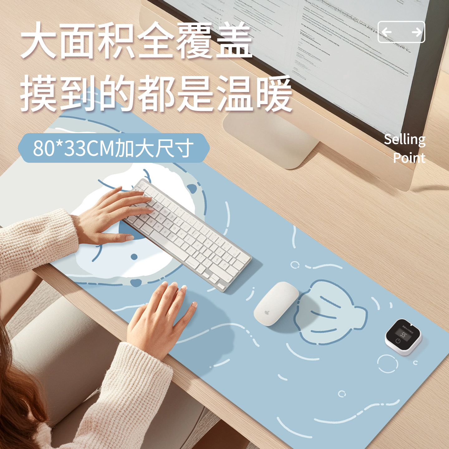 加热鼠标垫电热超大快捷键办公室保暖手垫定时恒温定制电脑暖桌垫