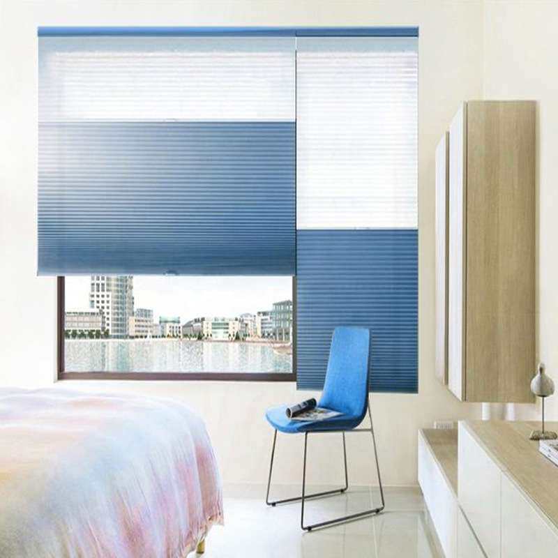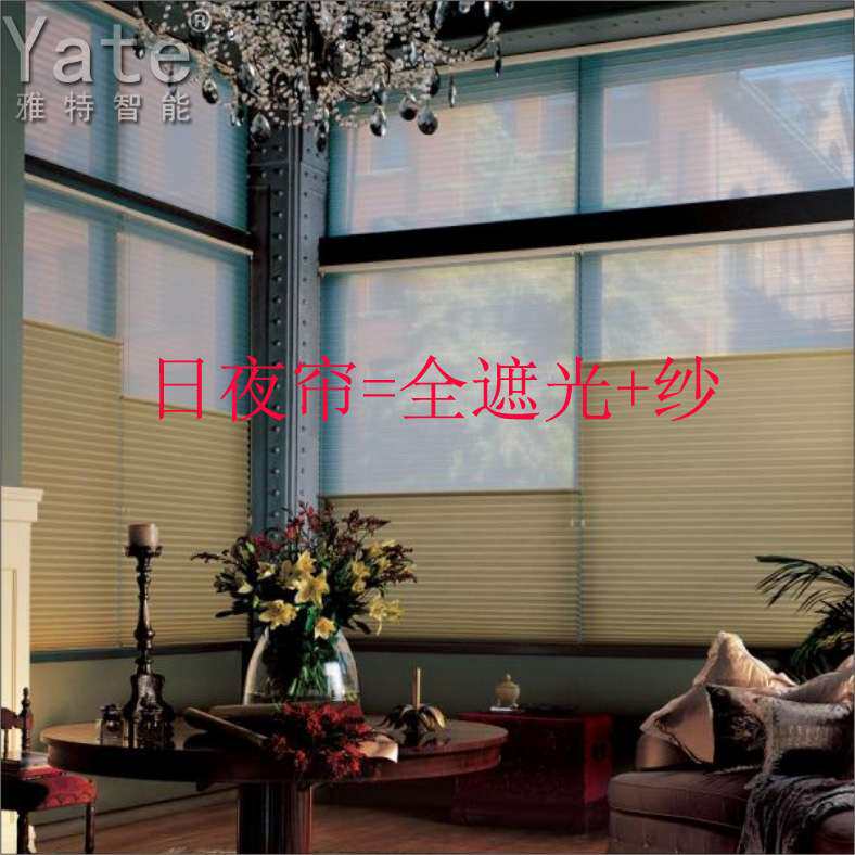 厂家遮光透光日夜式蜂巢帘手拉式进口蜂窝帘纱加全遮光双层百折帘