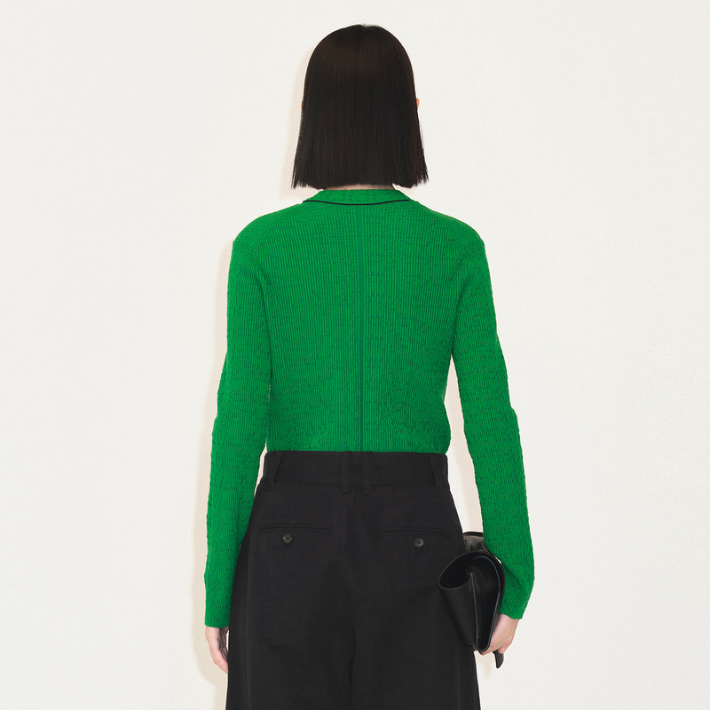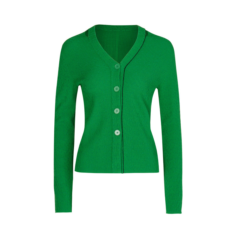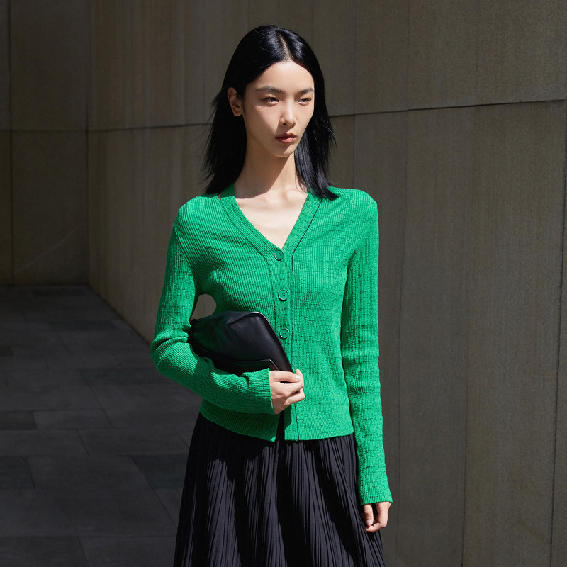 LESS复古绿色针织衫女简约V领修身短款内搭长袖毛开衫女2M8311750