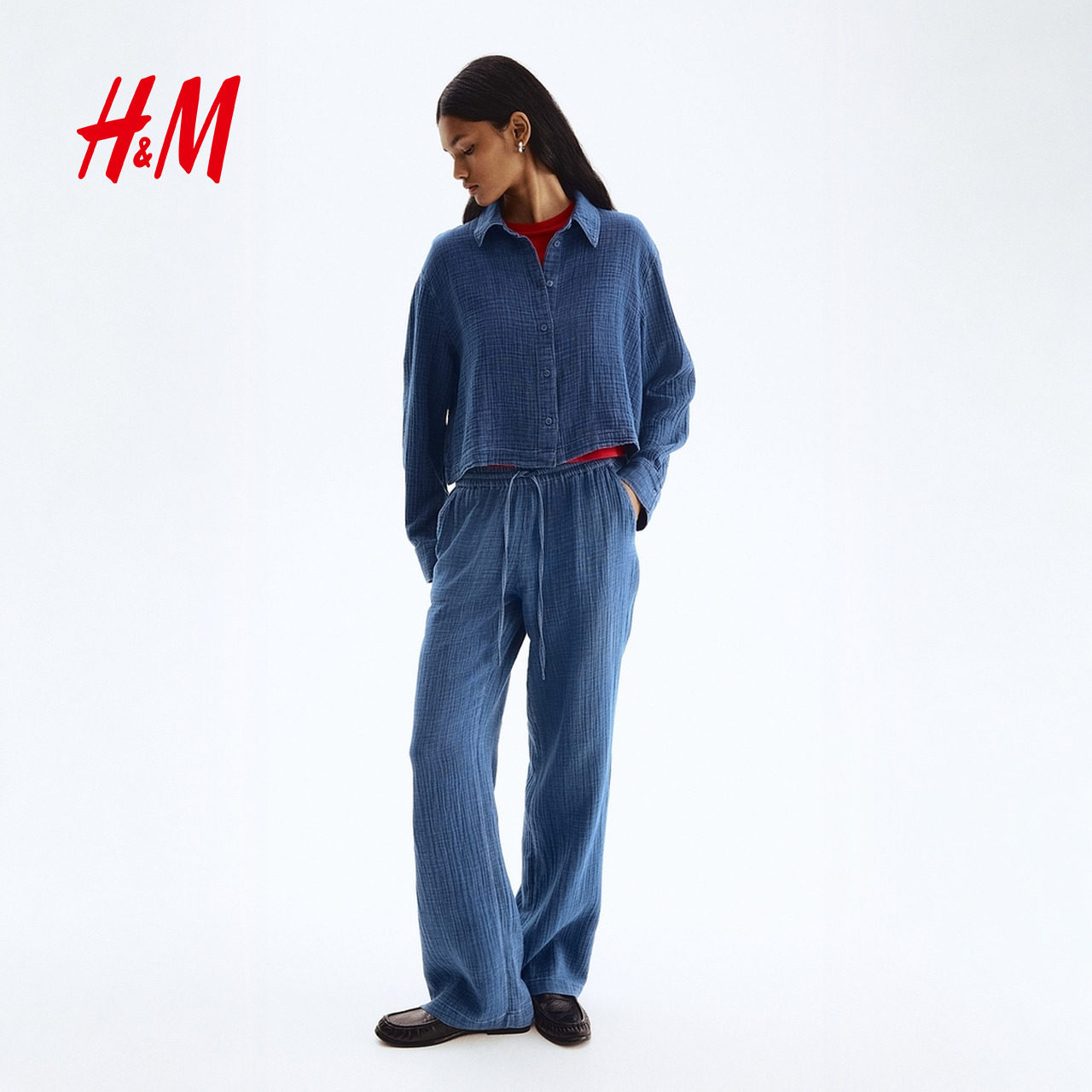HM春季女装时尚休闲百搭棉质薄纱衬衫1304352