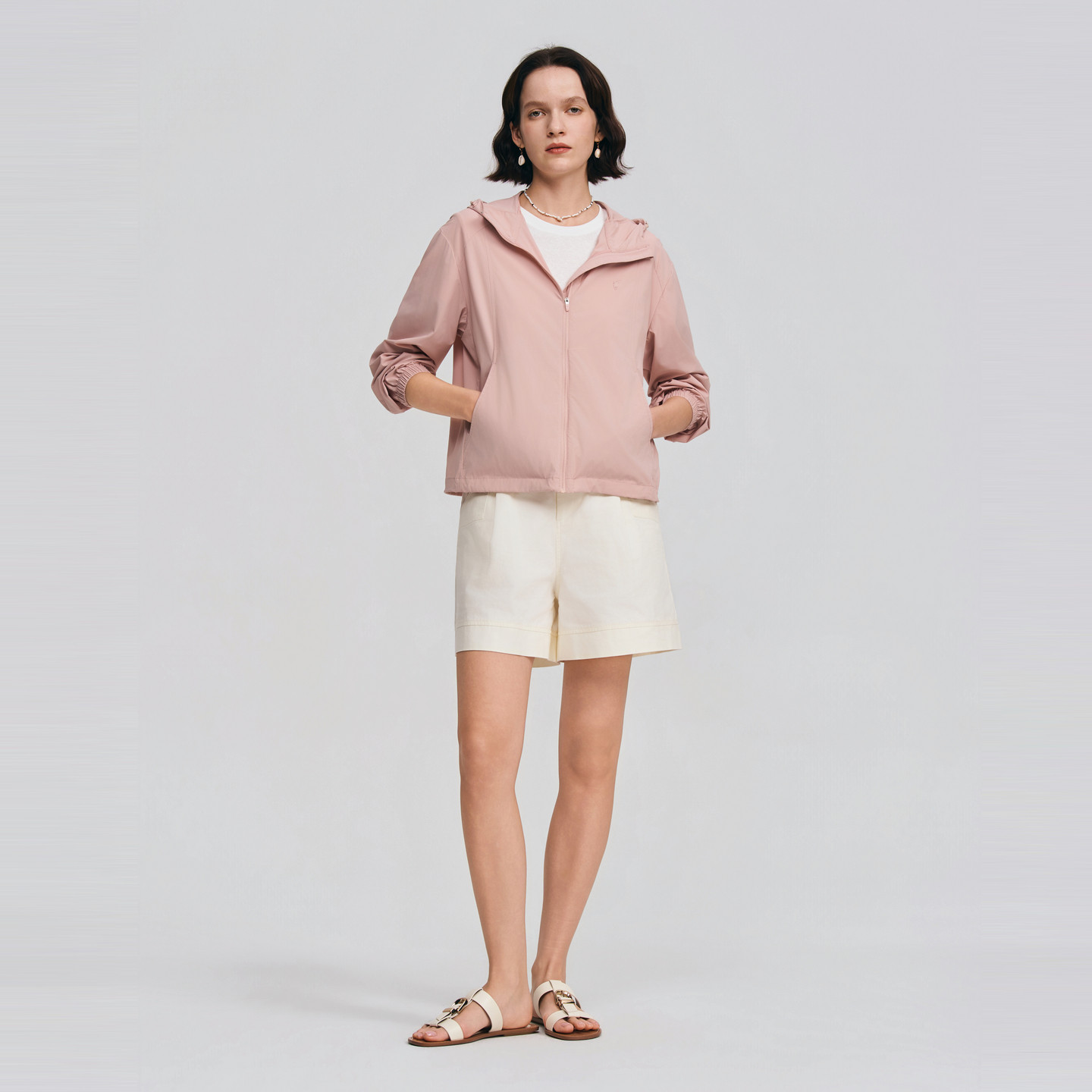 POLOWALK女士短外套2026春季新款简约纯色休闲运动连帽短款外套