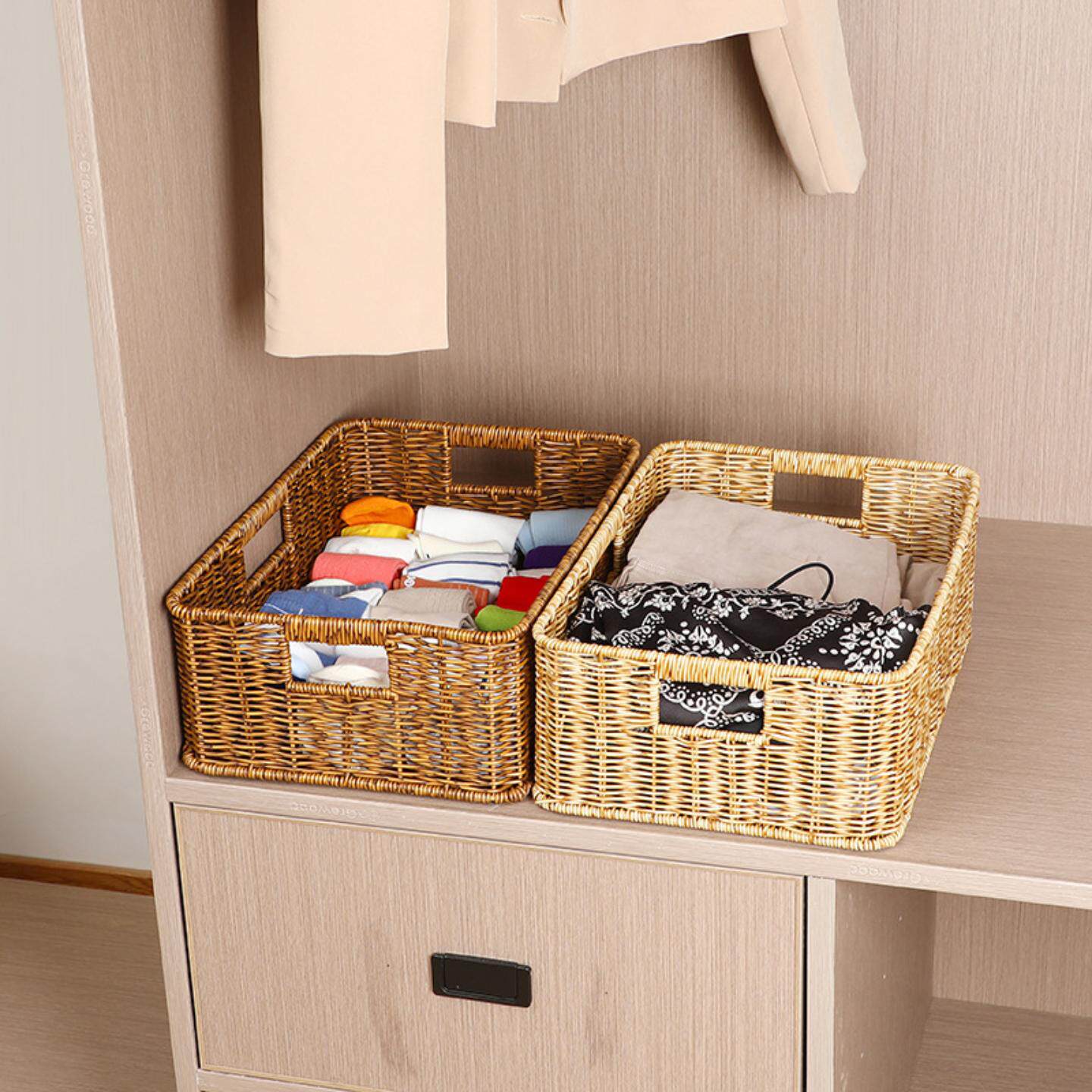 编织收纳筐家用桌面玩具杂物零食收纳整理箱储物篮仿藤编框