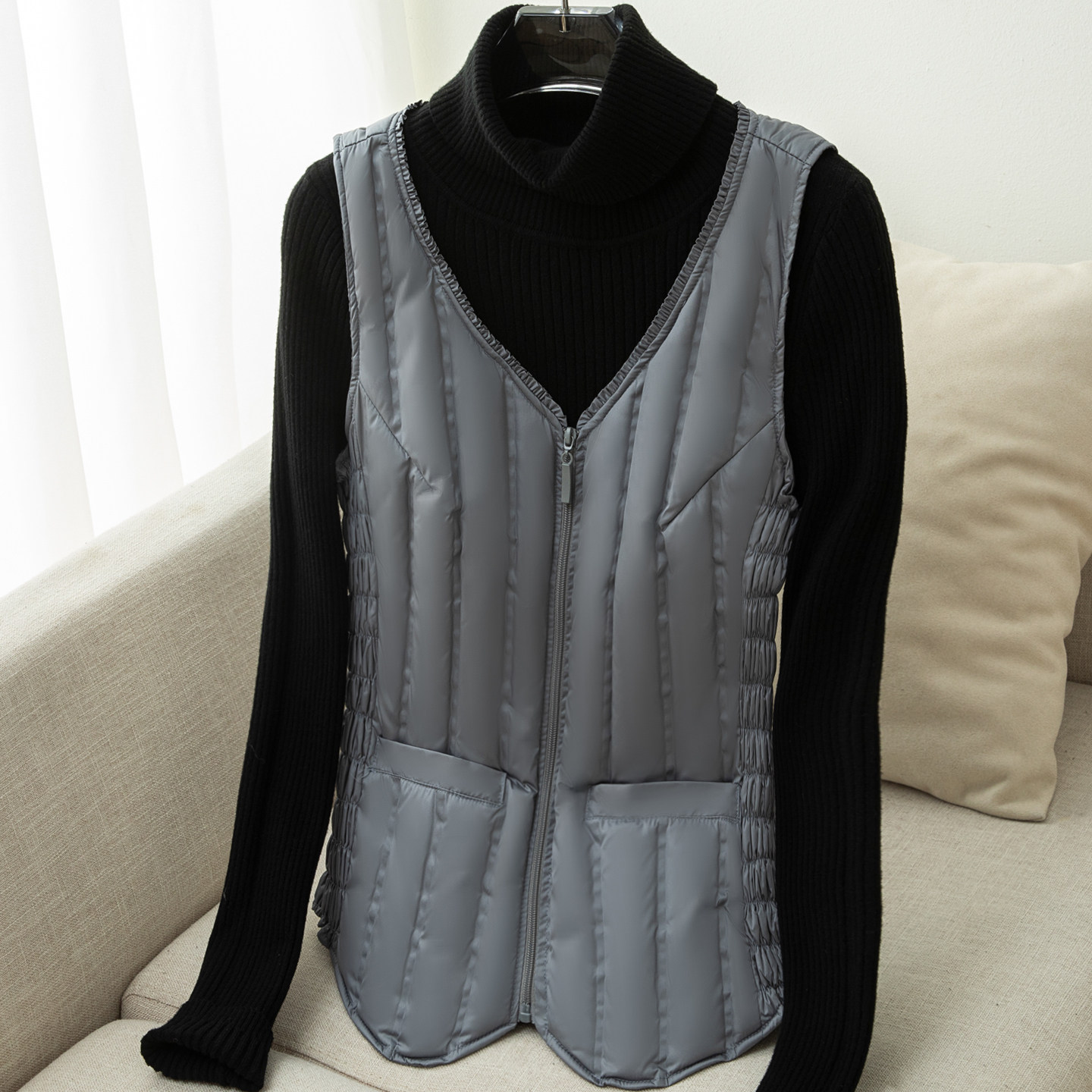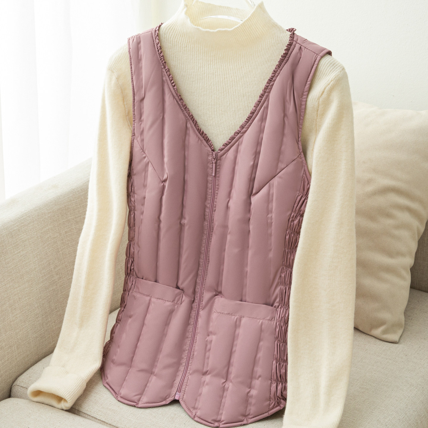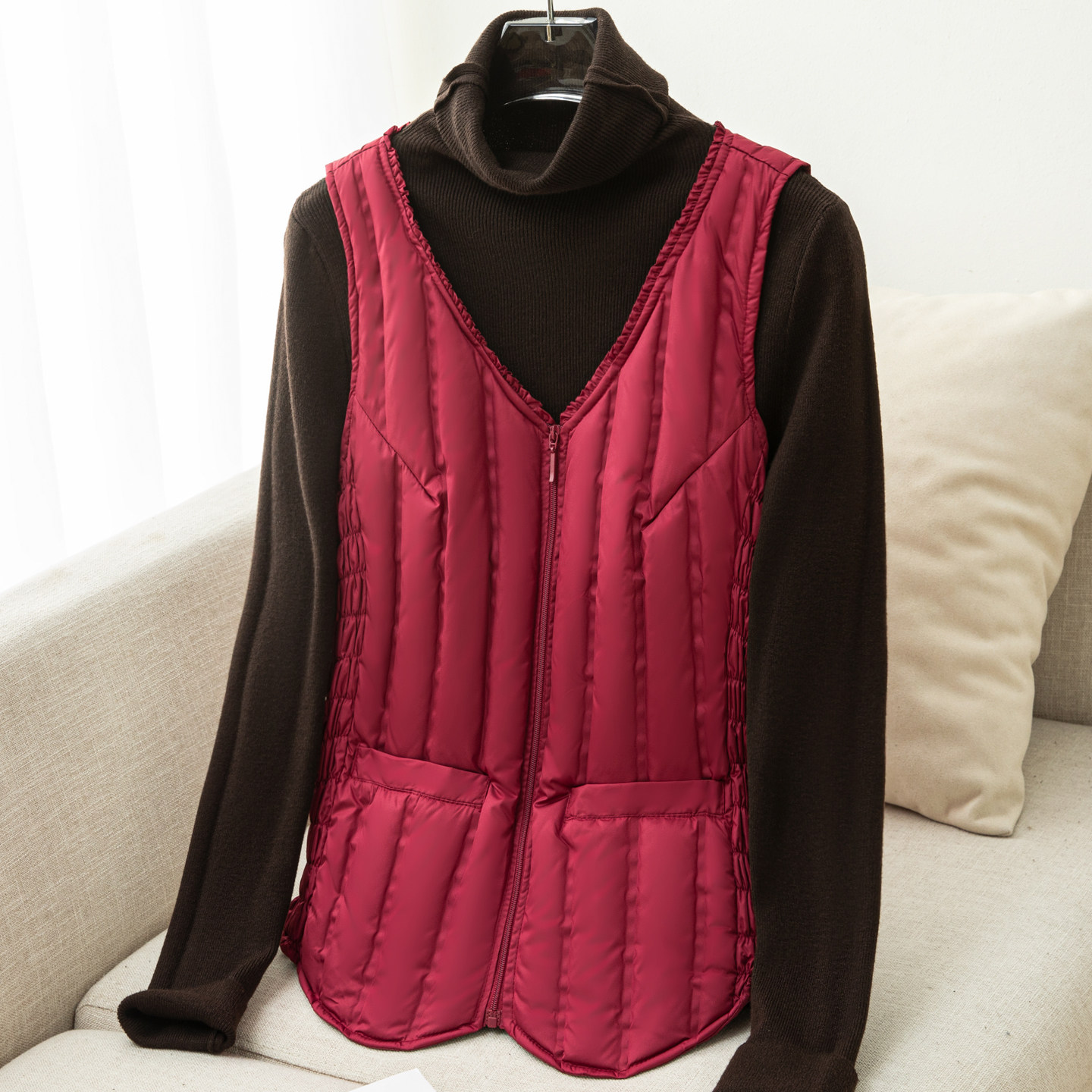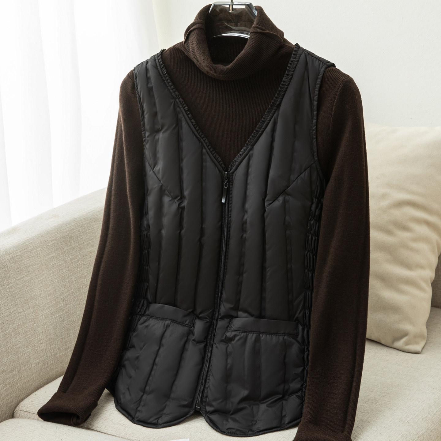鸭鸭轻薄羽绒服马甲女V领反季基础修身背心休闲蓬松鸭绒马夹外套X