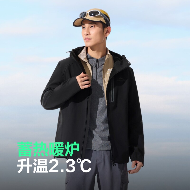 骆驼山海夹克加绒外套男秋冬款工装户外硬壳登山服防泼水旅行服女