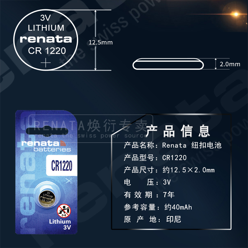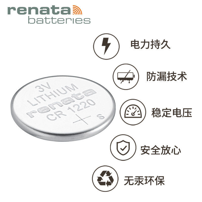 瑞士Renata纽扣电池CR1220适用卡西欧黑金GA-100/110/120/201 G-SHOCK 5146/5081/5229正品电子运动手表锂3V