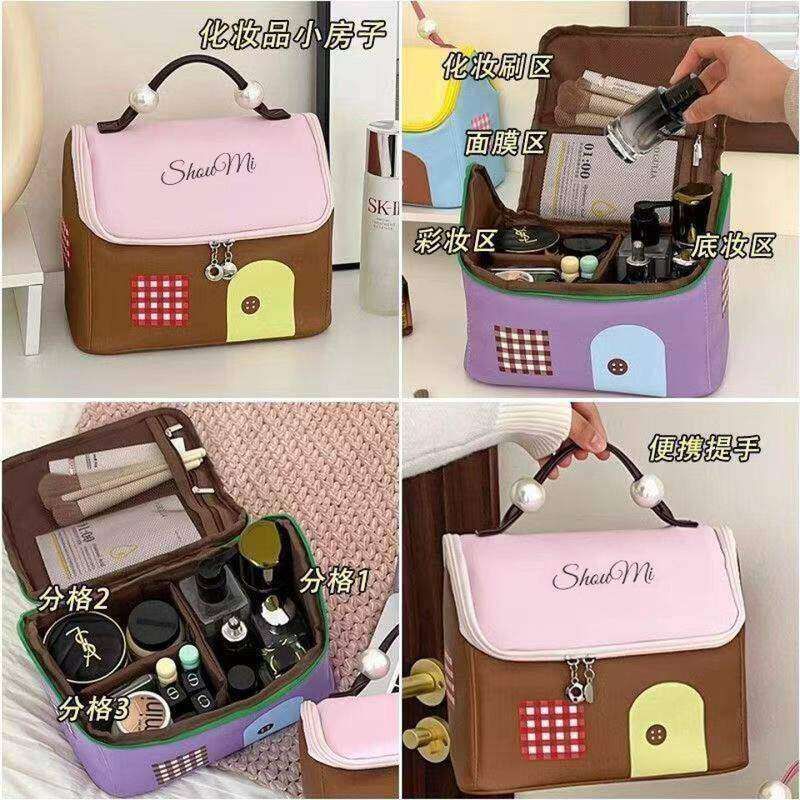 [GZP]可爱房子化妆包洗漱多巴胺大容量分区便携化妆包防震防摔