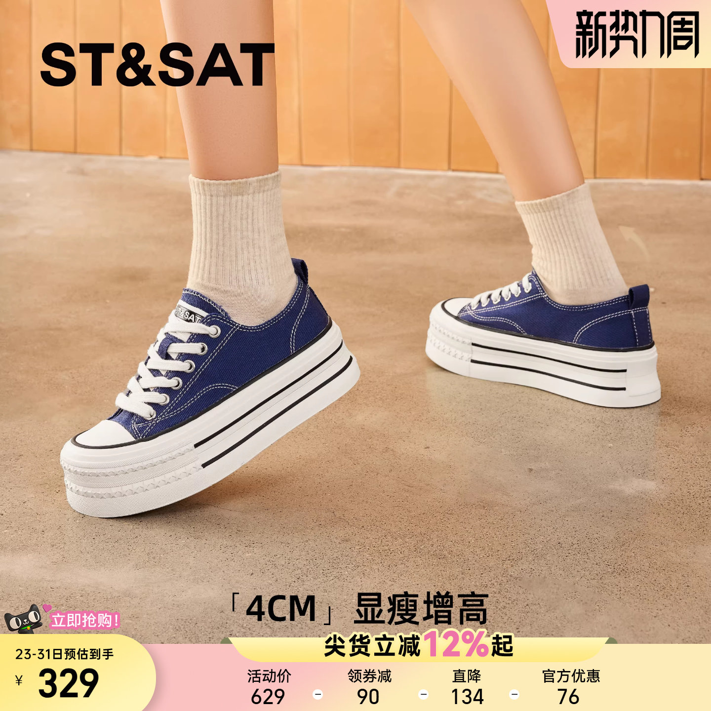 星期六厚底帆布鞋女款增高鞋新款松糕透气板鞋百搭小白鞋子【直】