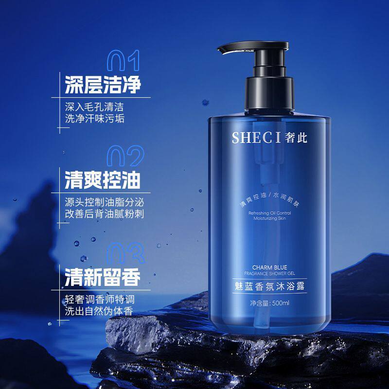 奢此魅蓝香氛沐浴露保湿清爽控油持久留香嫩肤滋润男士沐浴液乳