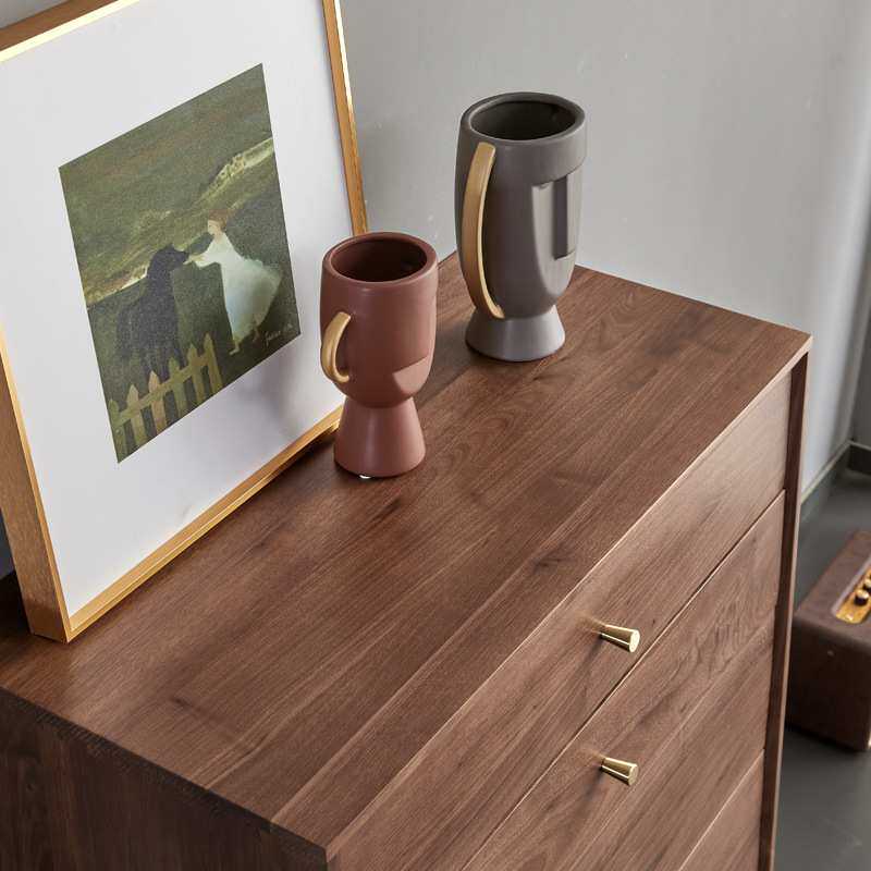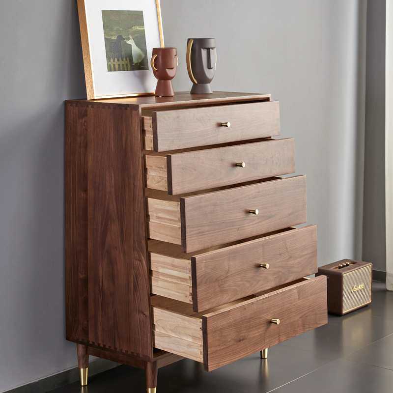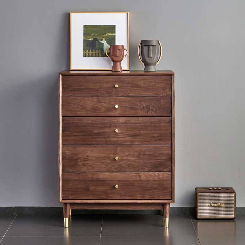 北欧黑胡桃木五斗柜简约现代抽屉储物柜客厅卧室边柜樱桃木收纳柜