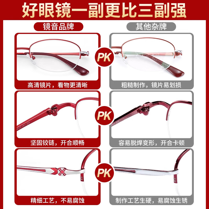 康视顿高清老花镜女超轻防蓝光高档中老年洋气老人眼镜时尚全框