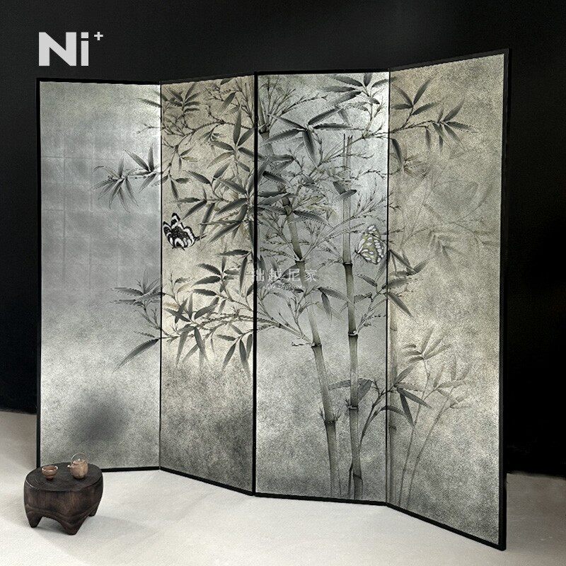 Ni尼家法式中古屏风隔断折叠客厅民宿酒店装饰水墨竹子中国风折屏