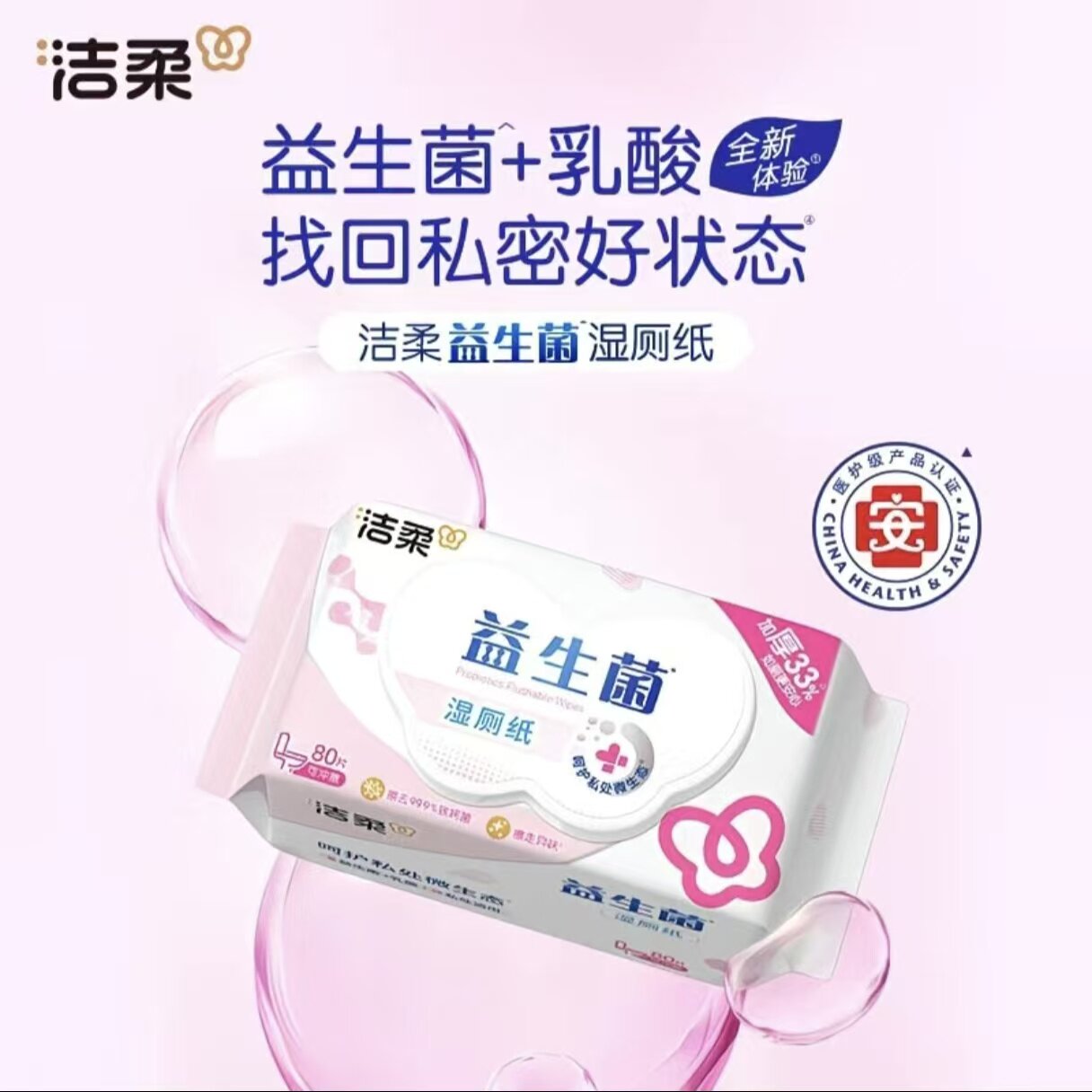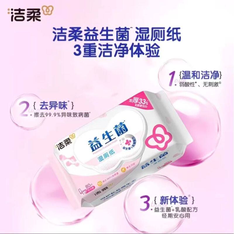 洁柔湿厕纸加厚益生菌湿厕纸清洁易溶马桶1包80抽一次性清洁囤货