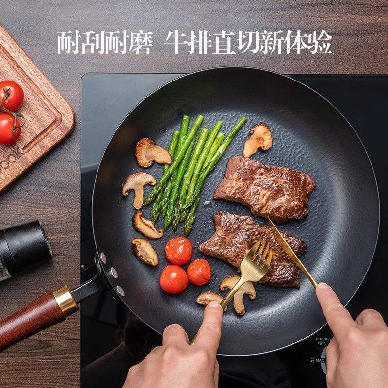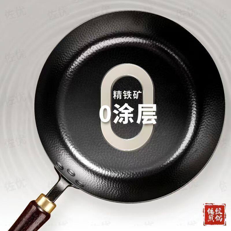 章丘老铁匠手工锻打煎锅无涂层不粘平底炒锅家用煎蛋烙饼老式铁锅
