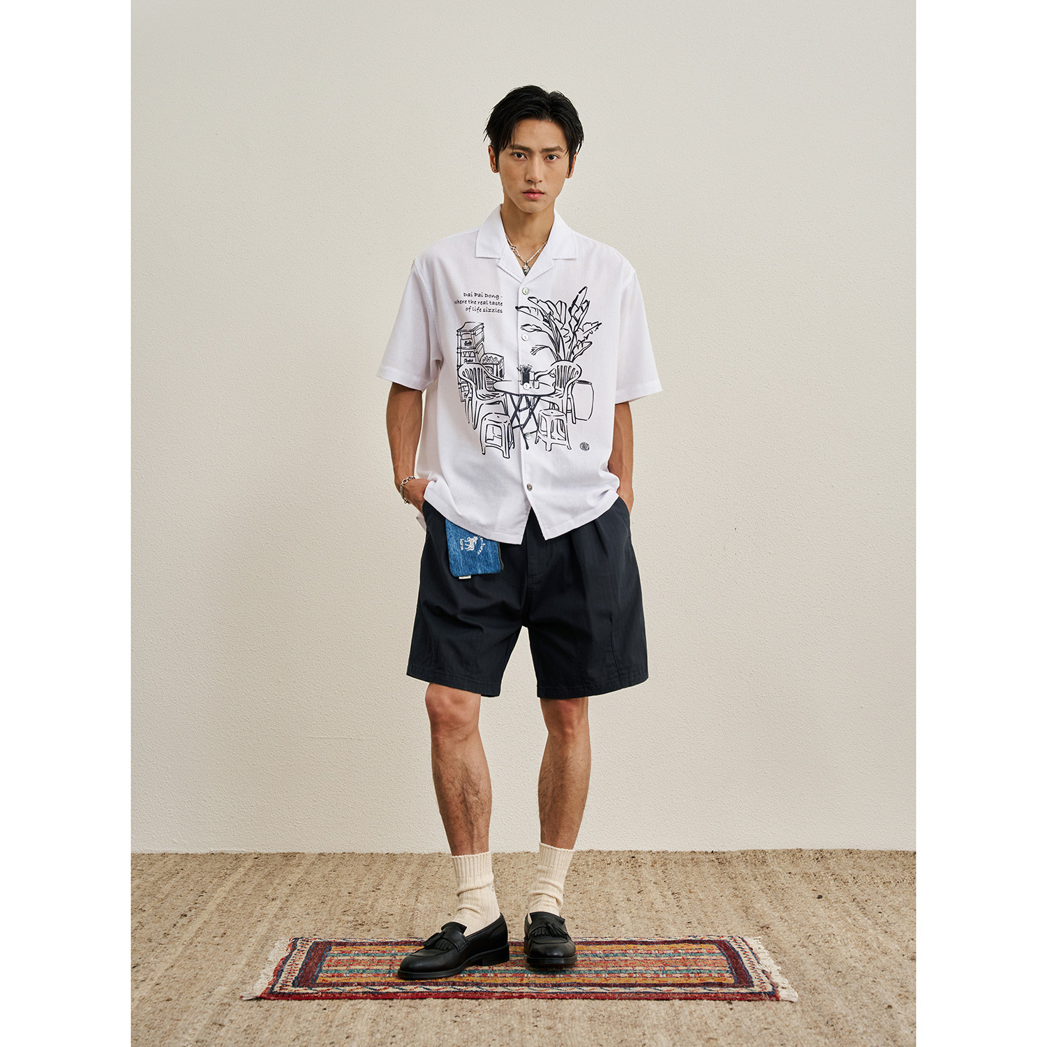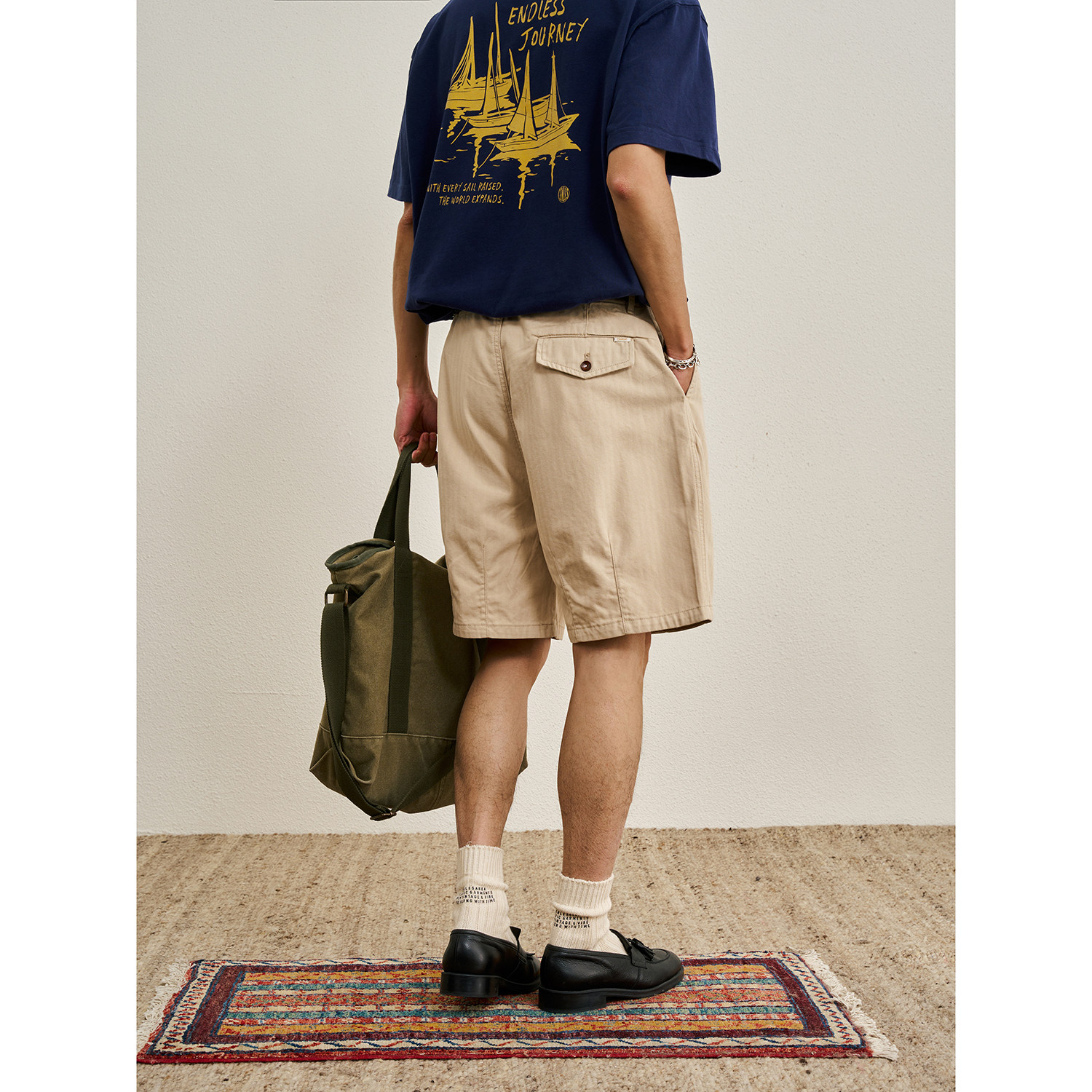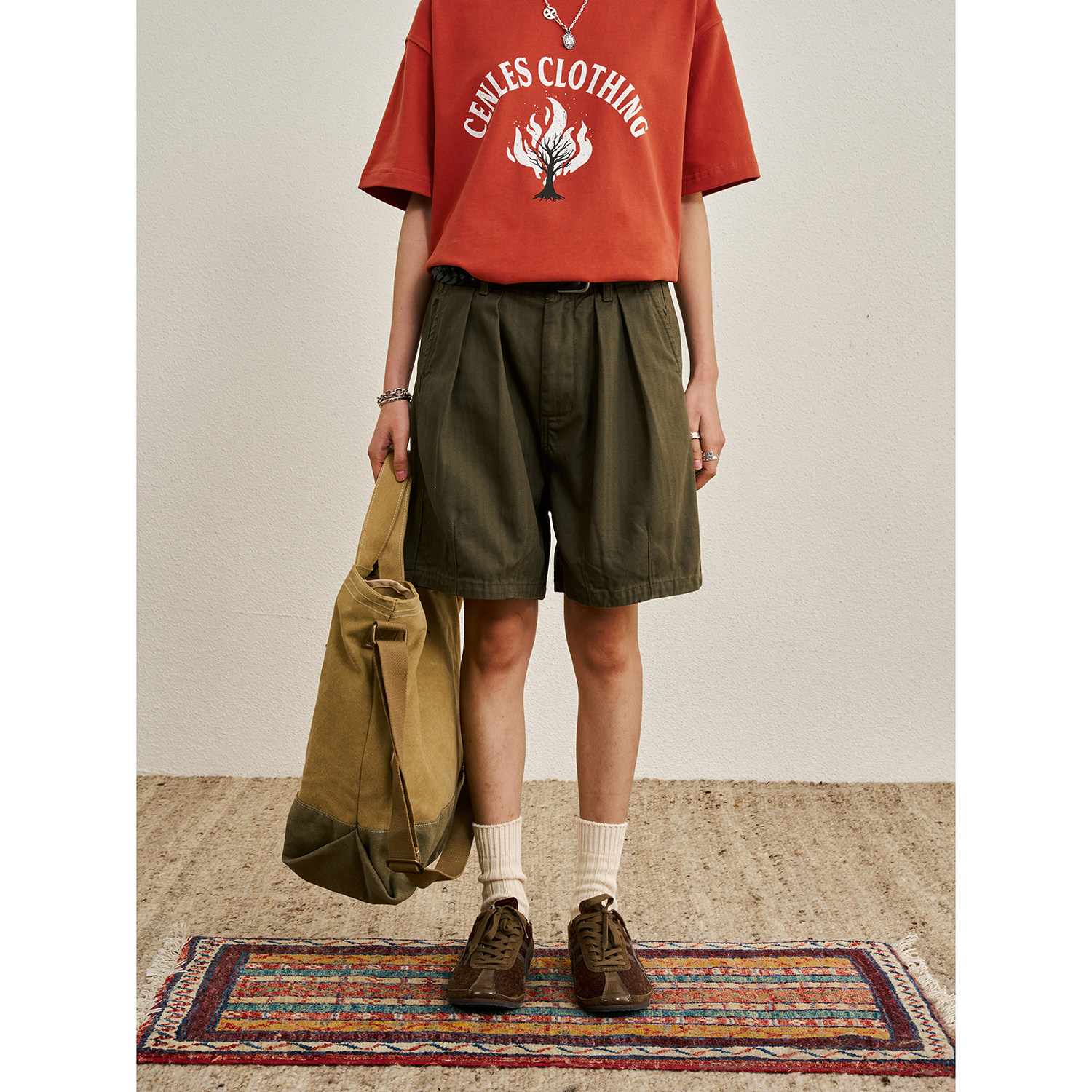 CENLES SS26 复古美式人字纹褶皱短裤做旧中腰五分休闲裤垂感宽松