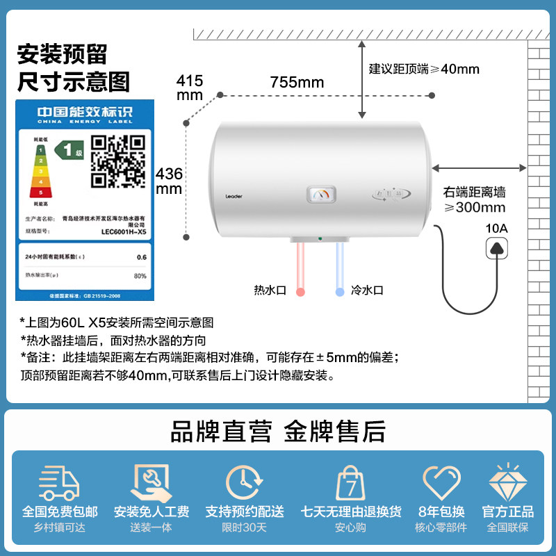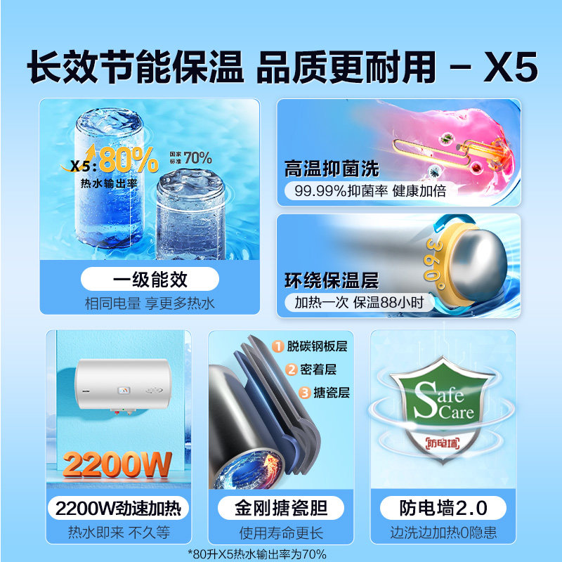 海尔智家统帅电热水器官方正品家用洗澡小型一级能效X5租房宿舍